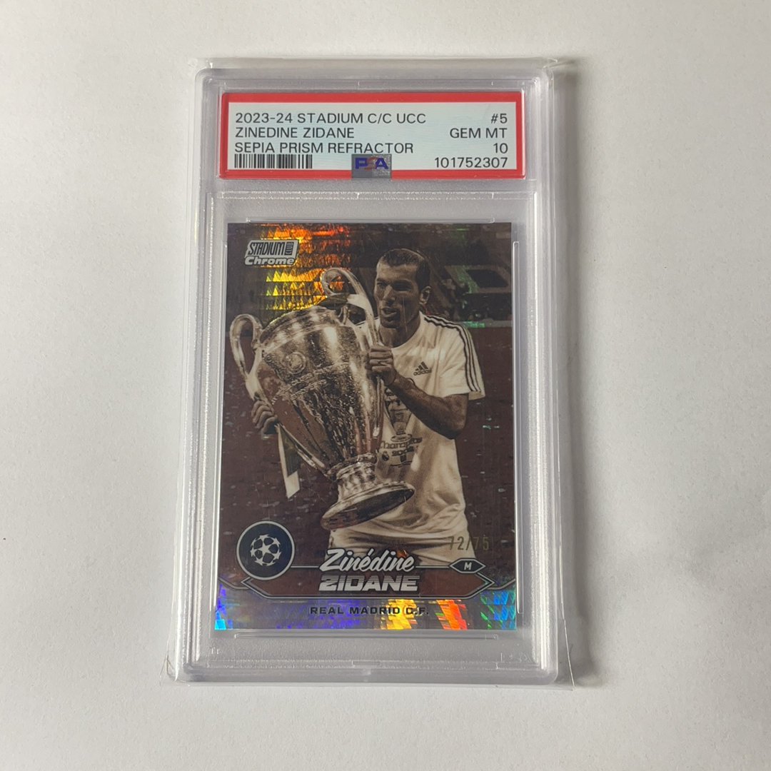 2024 Topps Stadium Club Chrome Zinedine Zidane 欧战竞技场 皇马 皇家马德里 齐达内 褐折 褐棱镜折 72/75编 psa 10分 卡品如图 阴