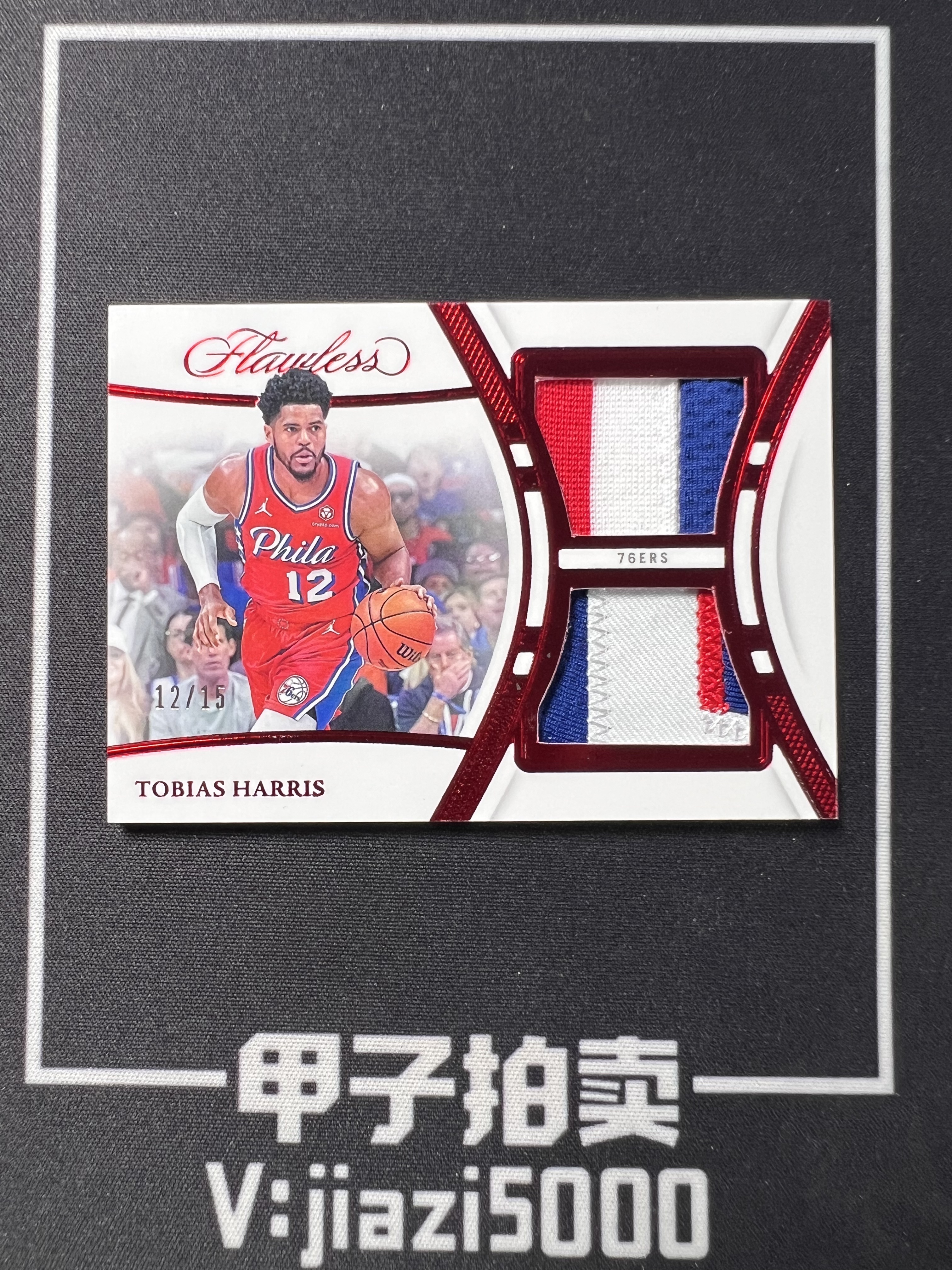 【甲子拍卖】2022-23 帕尼尼 Flawless 手提箱 76人 Tobias Harris 托拜厄斯 哈里斯 小腰子 双窗超暴力球衣切割 Patch 红平行 12/15编 同背 唯一 低编 微瑕看详情图 浩22K
