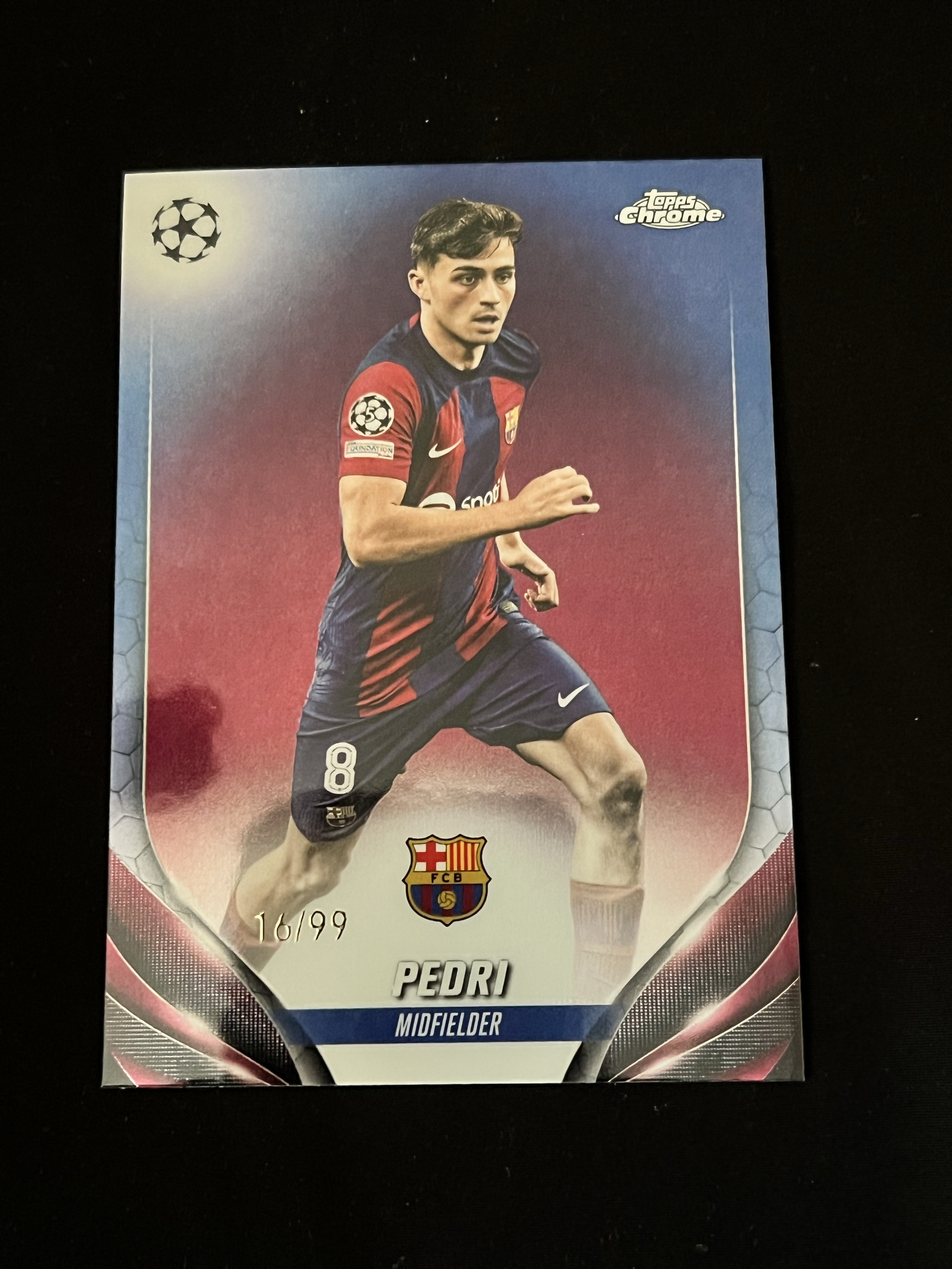 2023-24 Topps Chrome Pedri 佩德里 金童 佩刀 西班牙 巴萨 巴塞罗那 欧冠 TC 99编 蓝折 队服折 收藏必备 香菜