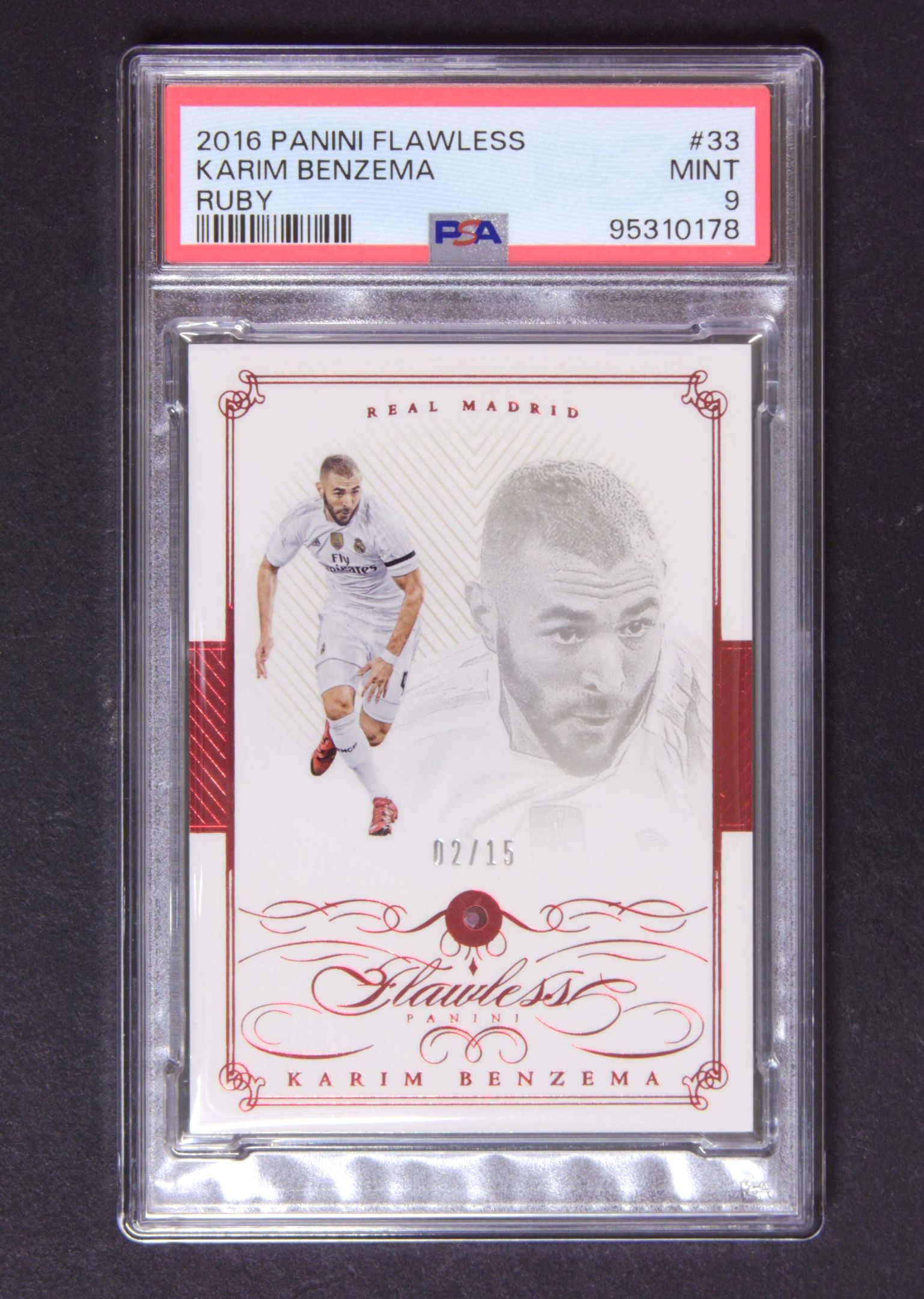 2015-16 Panini Flawless Karim Benzema LU酱专业代卖 (发01)手提箱 皇马 皇家马德里 卡里姆 本泽马 红平行 02/15编 超低编 稀有 红钻特卡 PSA9分