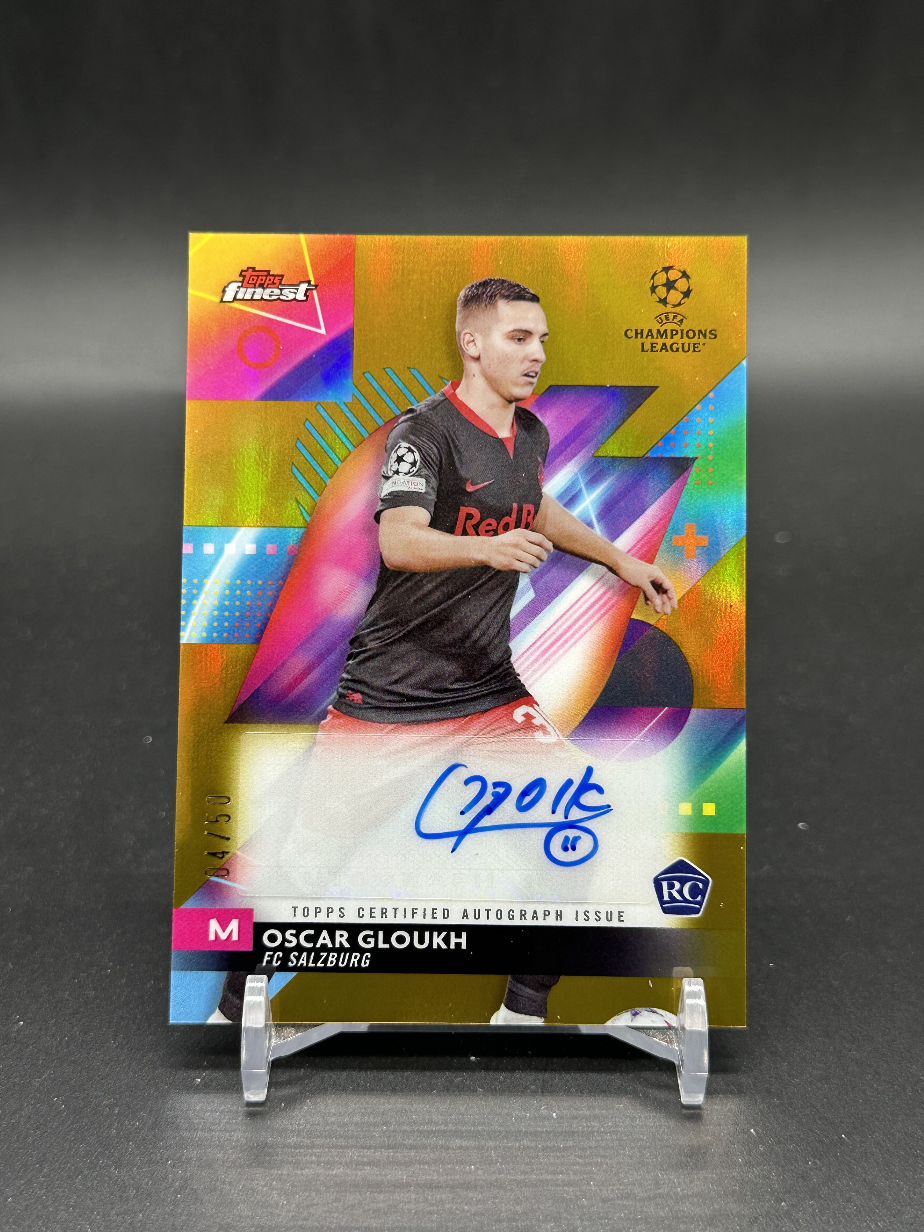 2023-24 Topps Finest UCL & UEL Oscar Gloukh RC 奥斯卡·格鲁克 欧冠 Gold Refractor 新秀金折签字 #04/50编 签了背号【大卫拍卖】