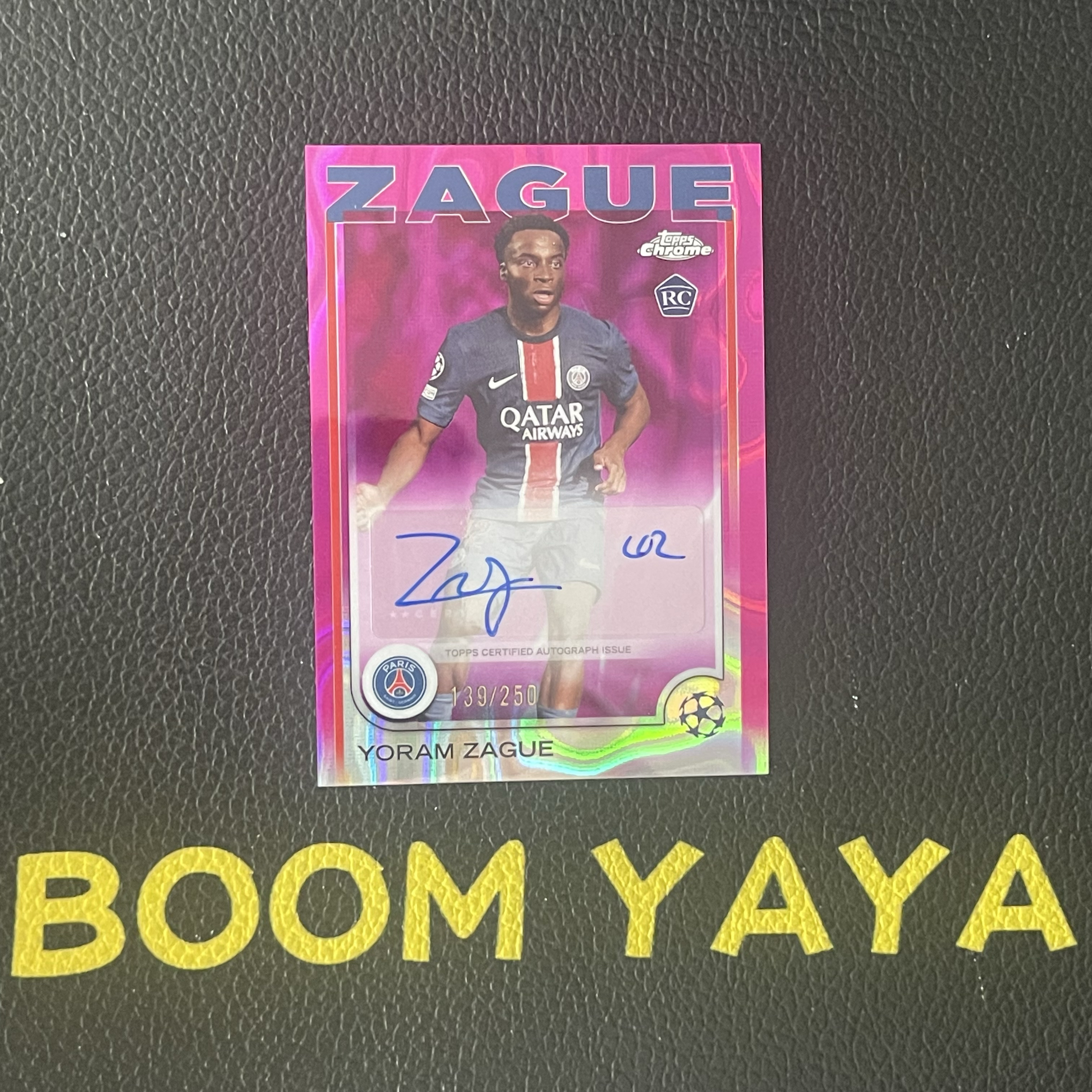 2025 Topps Chrome zague RC 【BOOM YAYA】欧冠 TC 巴黎 约拉姆 扎格 新秀rc 签字 粉熔岩折 139/250编 卡品如图 不累计不到付