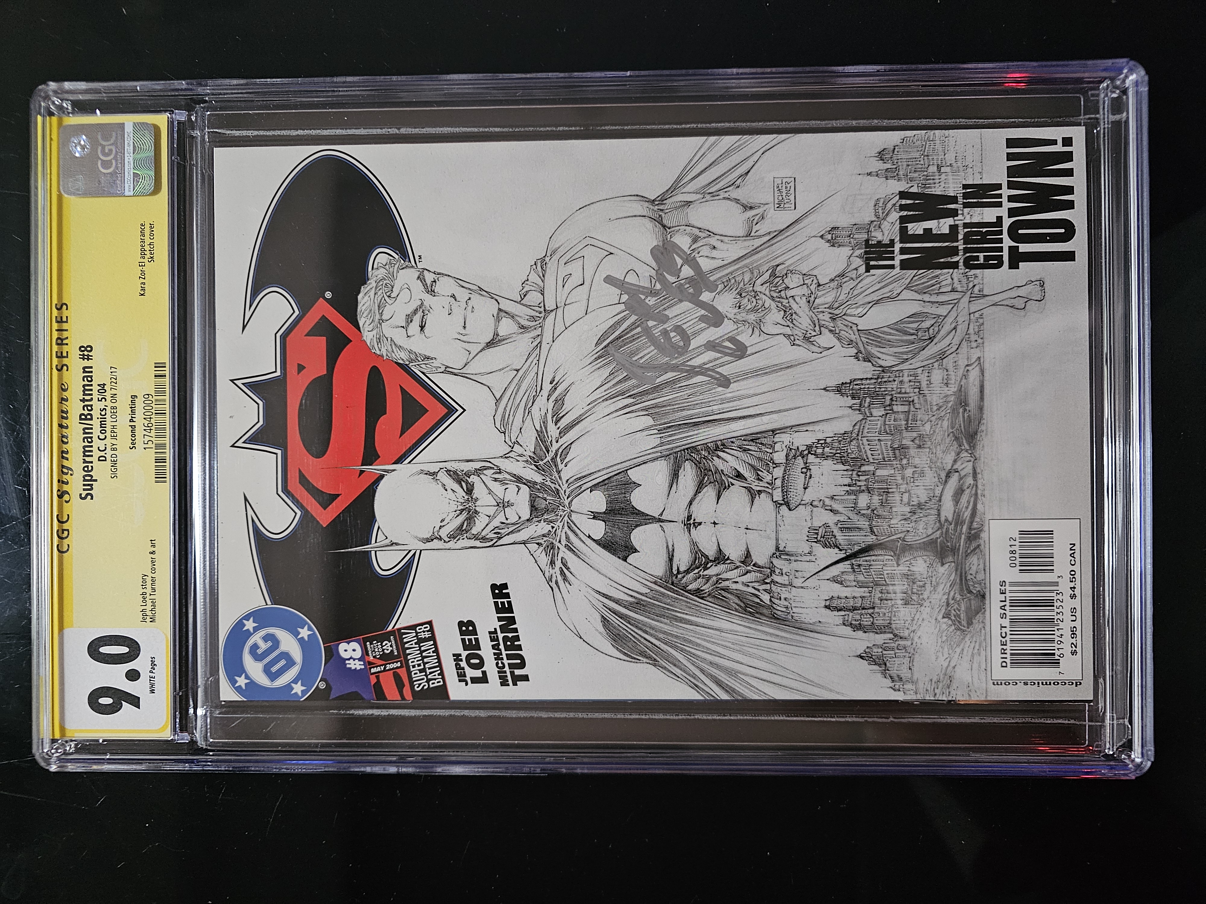 【KR美漫拍卖】评级美漫 CGC9.0 黄砖 DC Superman/Batman #8 四次获得艾斯纳奖知名编剧签 Jeph Loeb 第二次印刷 手绘封面 执ZHG