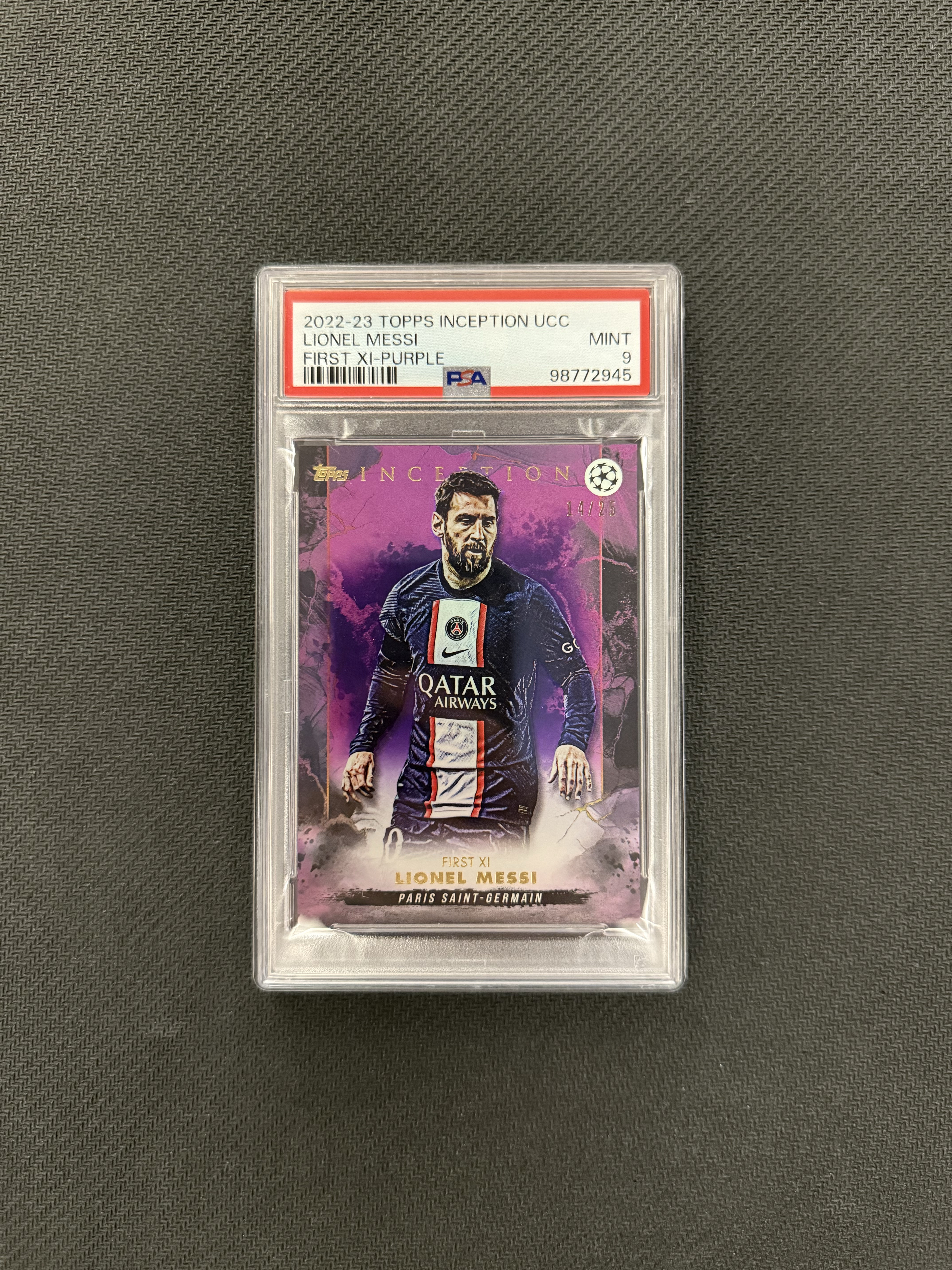 2023 Topps Inception Lionel Messi 盗梦空间 大巴黎 巴萨 阿根廷 梅西 紫折射 14/25编 psa9分 实卡超级好看
