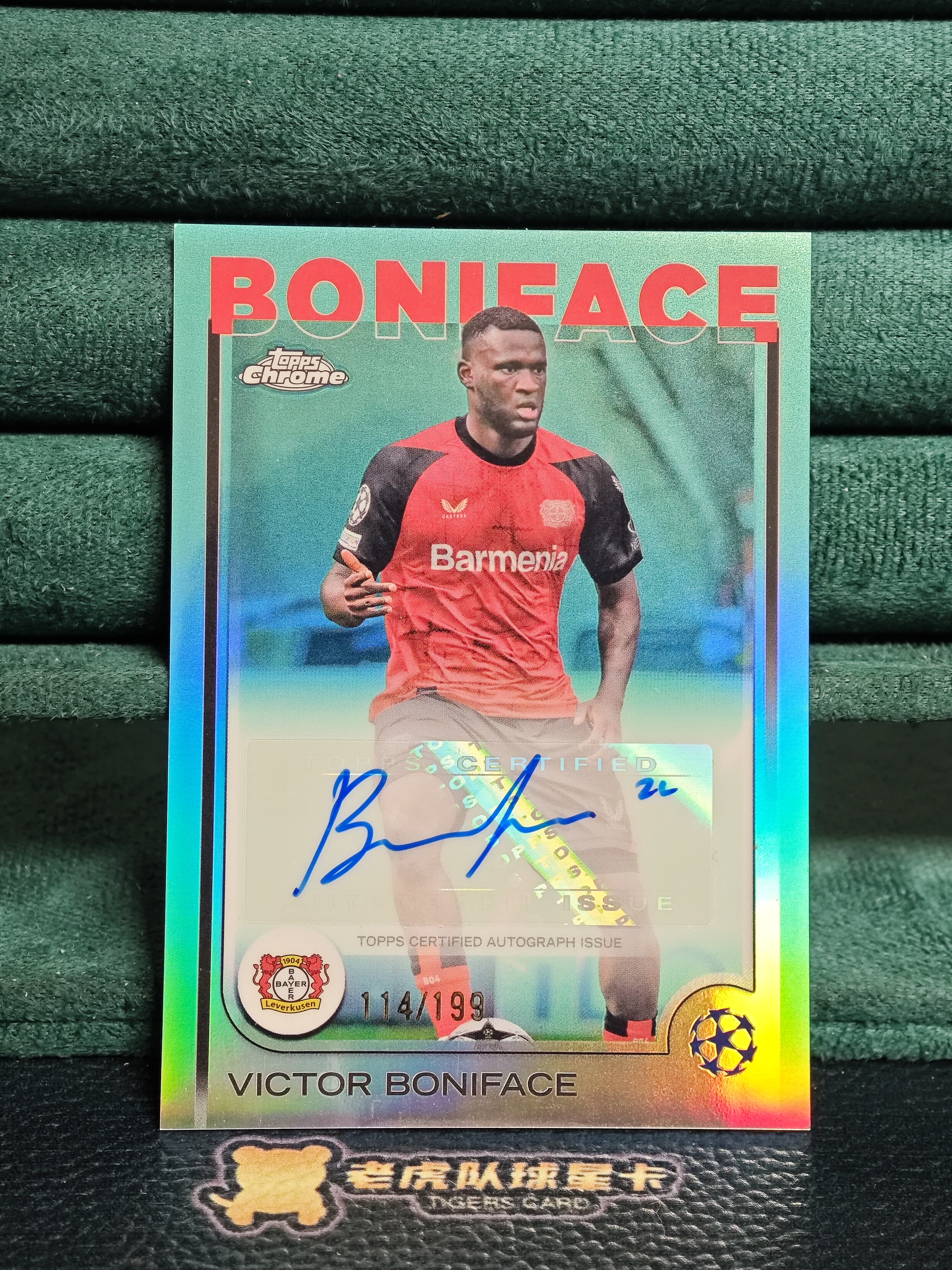2024-25 【老虎队 罗总】topps chrome Victor Okoh Boniface 欧冠tc 博尼费斯 签字 青折 114/199编 勒沃库森 z