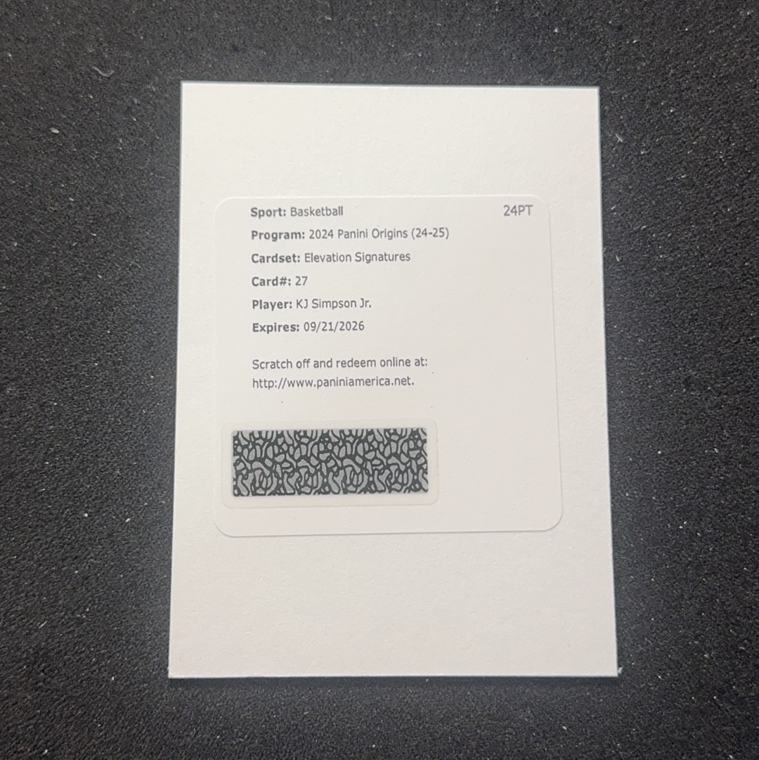 2024-25 Panini Origins KJ Simpson 【小V代拍】KJ 小辛普森 签字 Rc新秀 起源 卡品如图【Tenor】