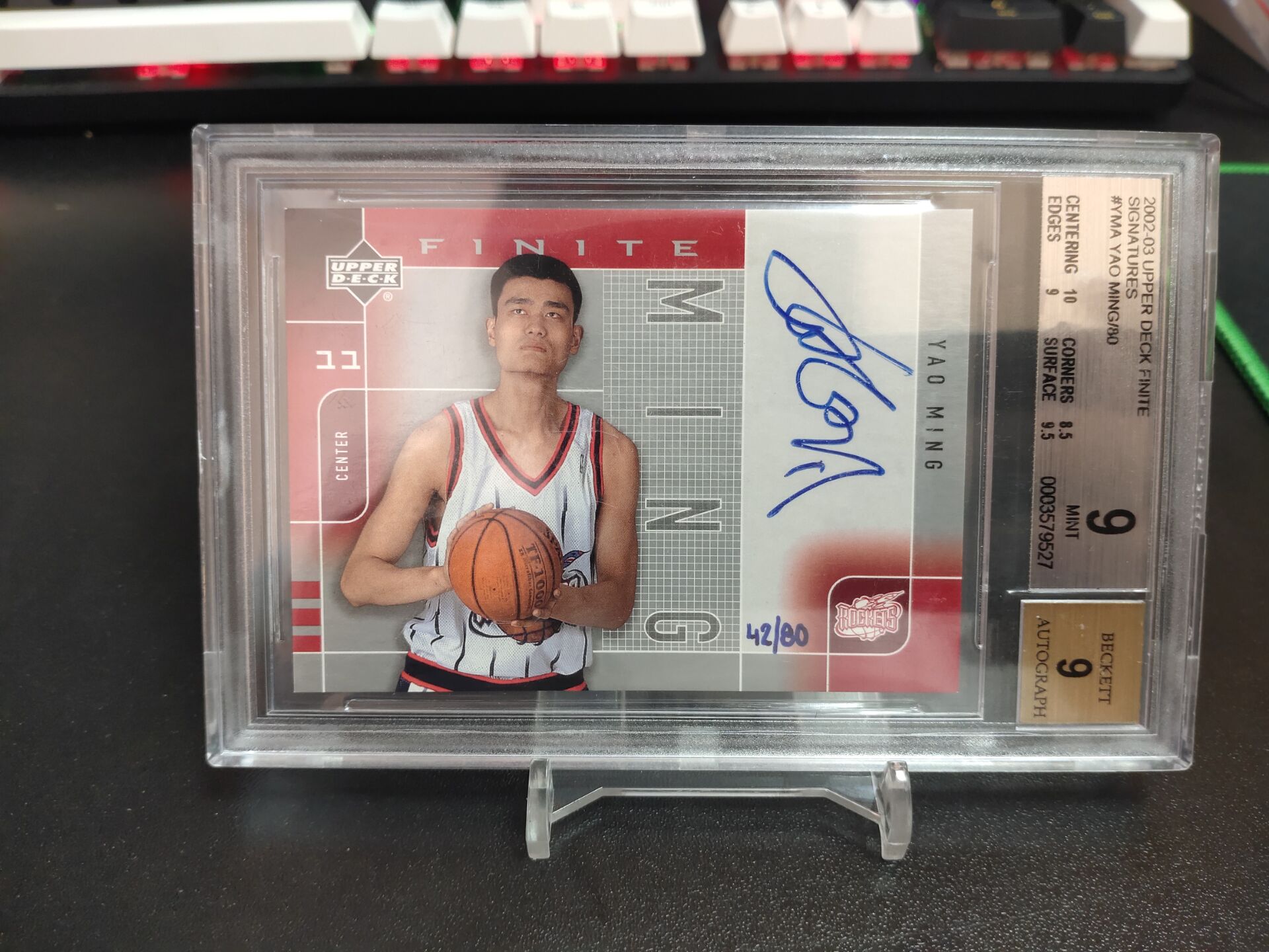 【浩行拍卖 截标预付82%】2002-03 upper deck ud finite yao ming 火箭 姚明 姚主席 小巨人 移动长城 签字 卡签 42/80编 手写编 bgs9评级 金标 墨迹9分 老卡「剪短」0626D02緲