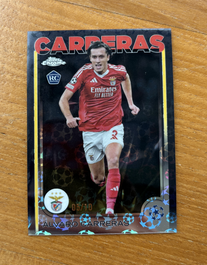 2025 Topps Chrome Alvaro Carreras RC 欧冠TC 本菲卡 新秀 阿尔瓦罗 费尔南德斯 卡雷拉斯 欧冠黑折 5/10 低编难得 专收必备 收藏佳品 实卡漂亮
