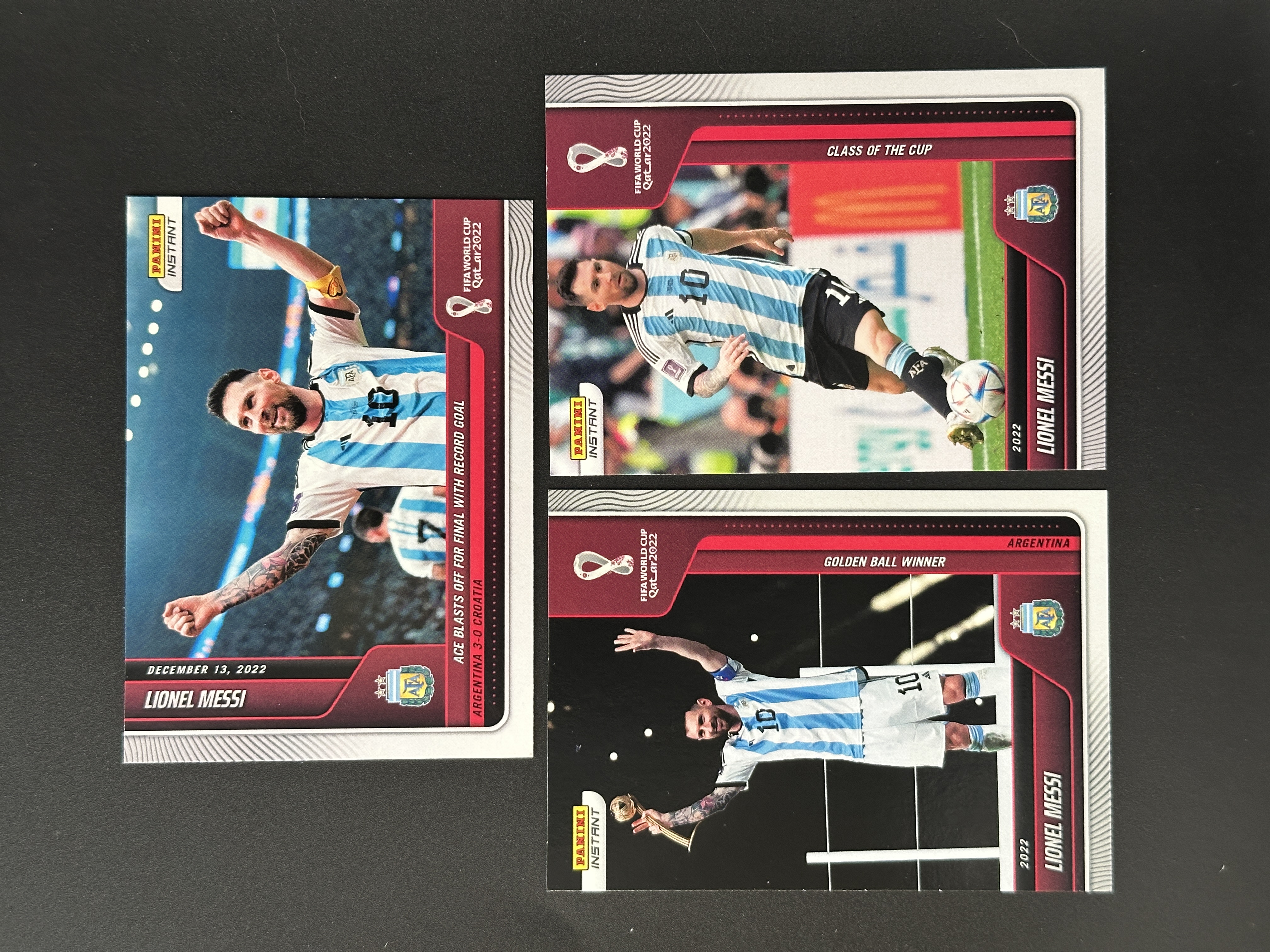 2022 Panini Instant Lionel Messi 里奥 梅西 捧杯时刻 世界杯冠军 阿根廷 巴萨 巴黎 球王 足坛第一人 卡塔尔 世界杯 带编 3张打包 细节看图