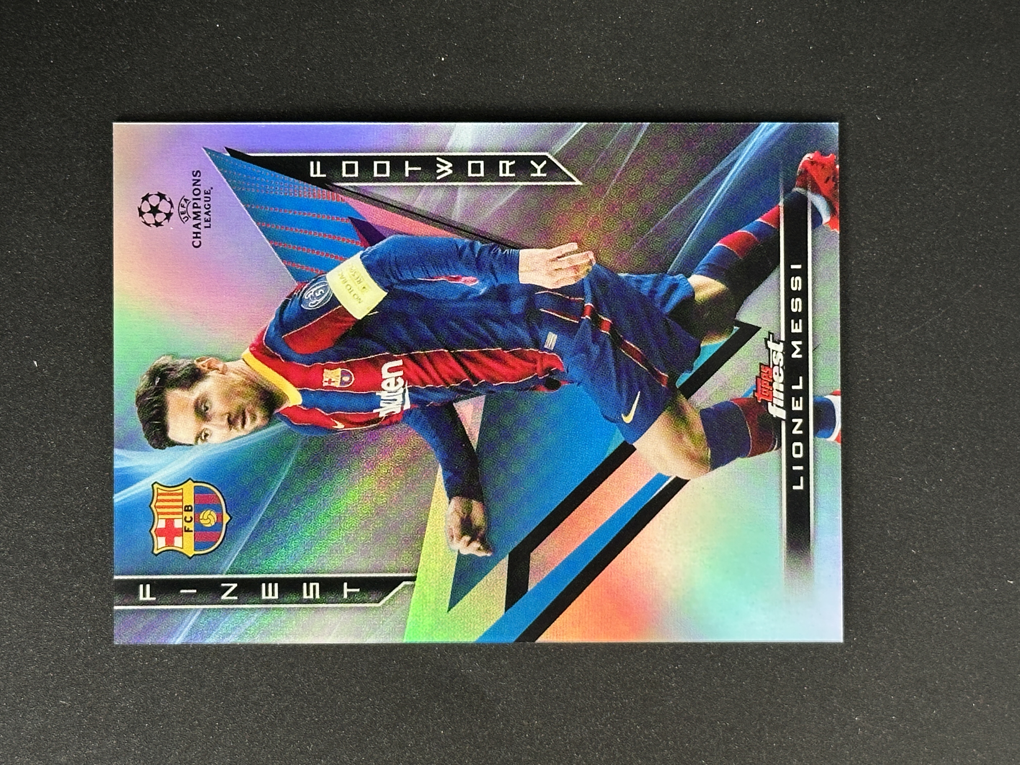 2020-21 Topps Finest Lionel Messi 里奥 梅西 梅老板 阿根廷 巴黎圣日耳曼 迈阿密国际 巴萨 欧冠 Finest Footwork 特卡 银折 折射 细节看图