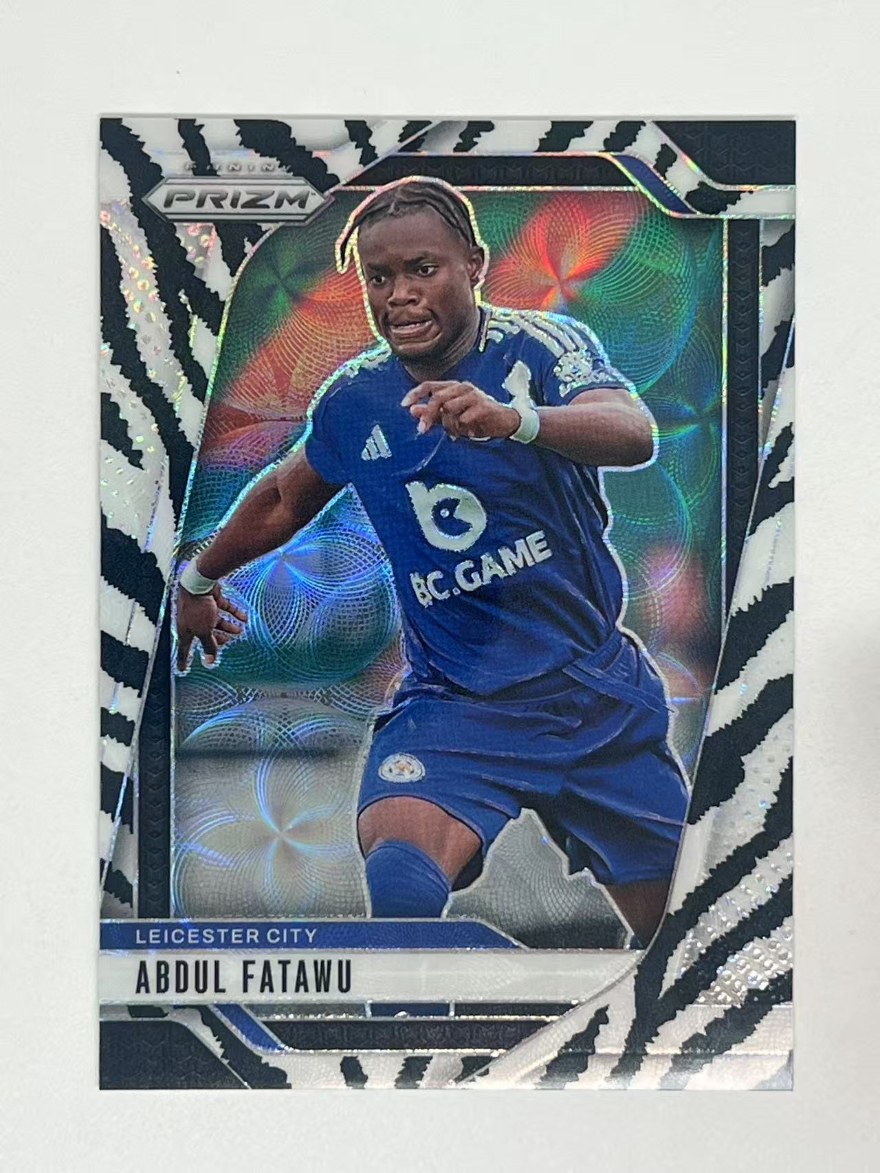 2024-25 Panini Prizm ABDUL FATAWU 【宁动拍卖】英超PZ 莱斯特城 阿卜杜勒 法塔武 09/15编 斑马折 圈圈折 折射 卡品如图 收藏必备 哈吉