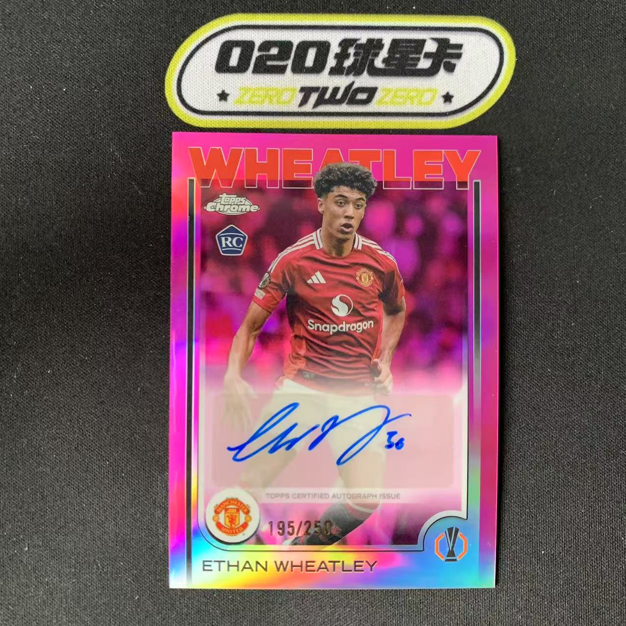 2024-25 Topps Chrome Ethan Wheatley 欧冠TC 伊森 惠特利 RC新秀 195/250编 粉折 签字 曼联 微瑕如图 收藏必备(LC88)