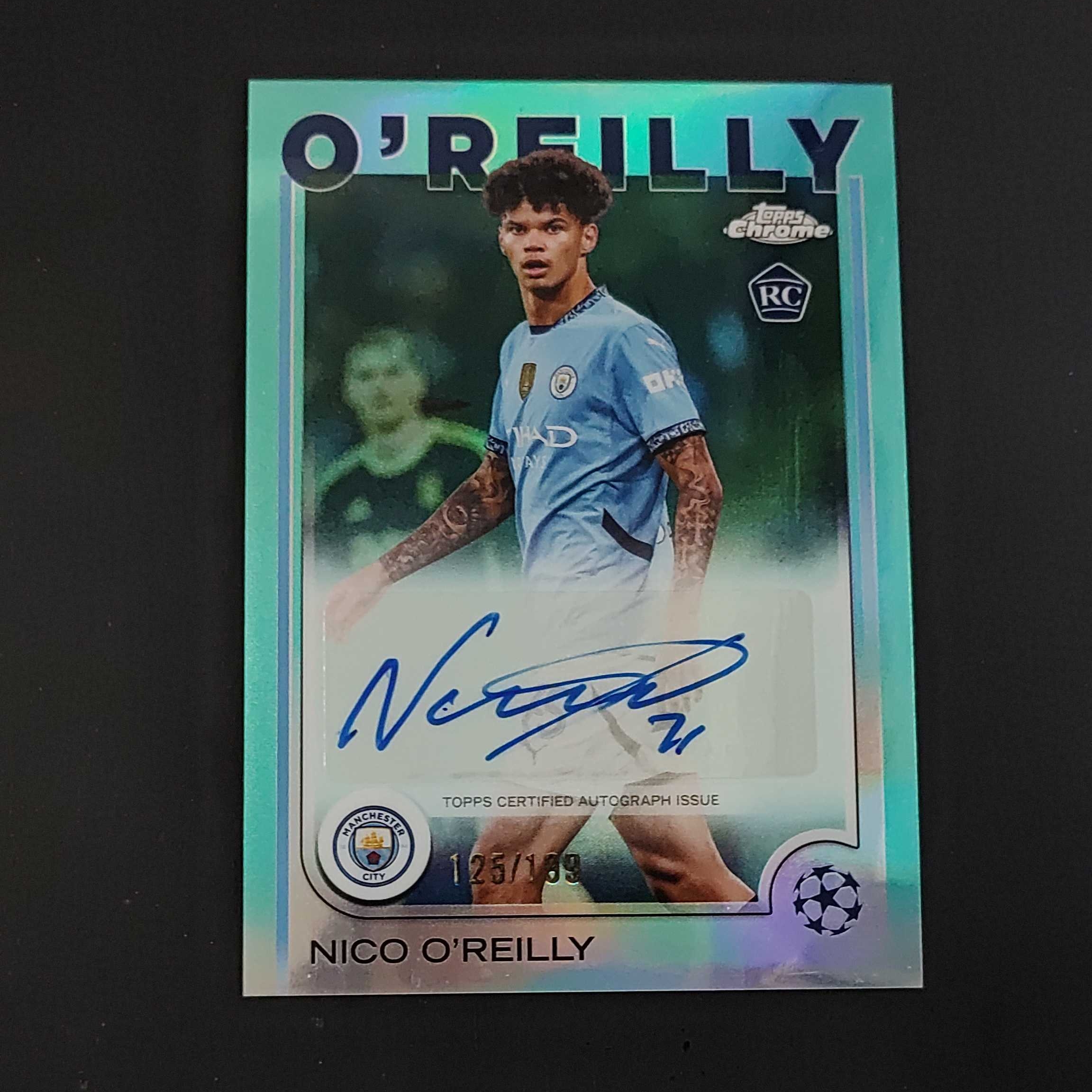2025 Topps Chrome nico o'reilly 奥莱利 阳阳常哥15 Chrome系列 125/199编 签字 RC 新秀 青折签 青熔岩折 曼城 英格兰 潜力新星 欧冠 卡品如图