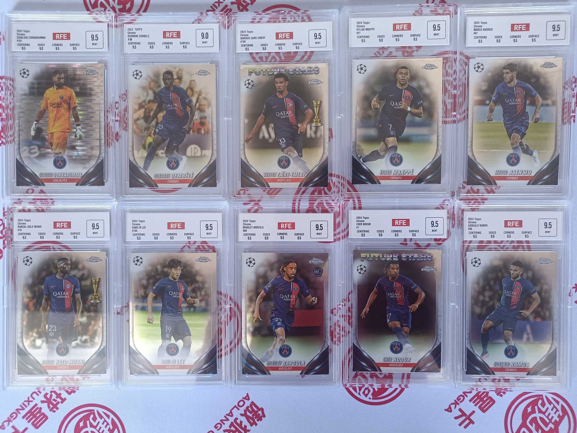 2024 Topps Chrome Kylian Mbappe 法甲 巴黎圣日耳曼 大巴黎 登贝莱 足球先生大热 皇马 姆巴佩 欧冠冠军 杜埃队友 全队合家福 10张lot打包出〔傲狼拍卖〕可累计