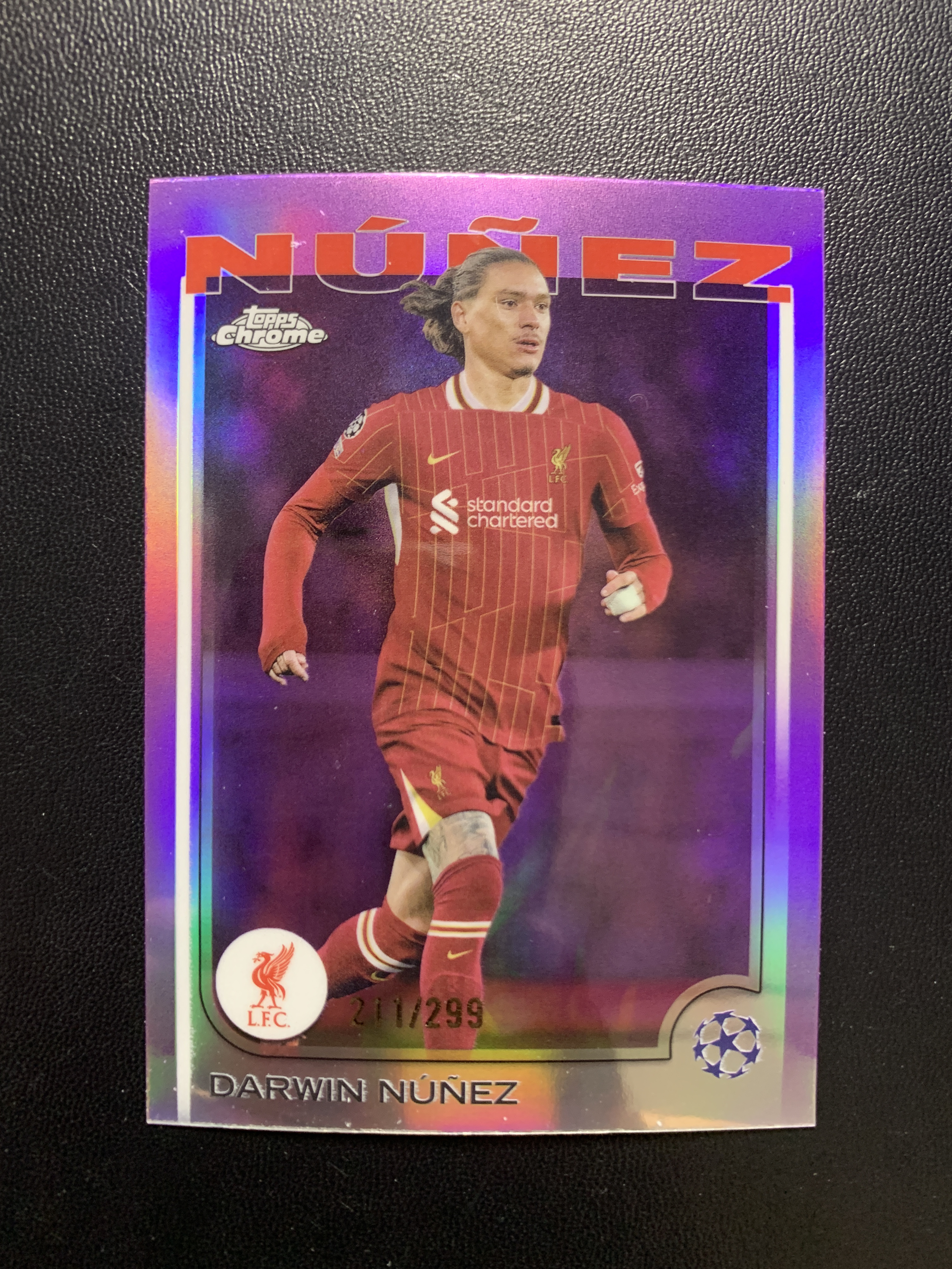 2025 Topps Chrome 欧冠 Darwin Nunez 努涅斯 紫折 299编 利物浦 base 专收必备