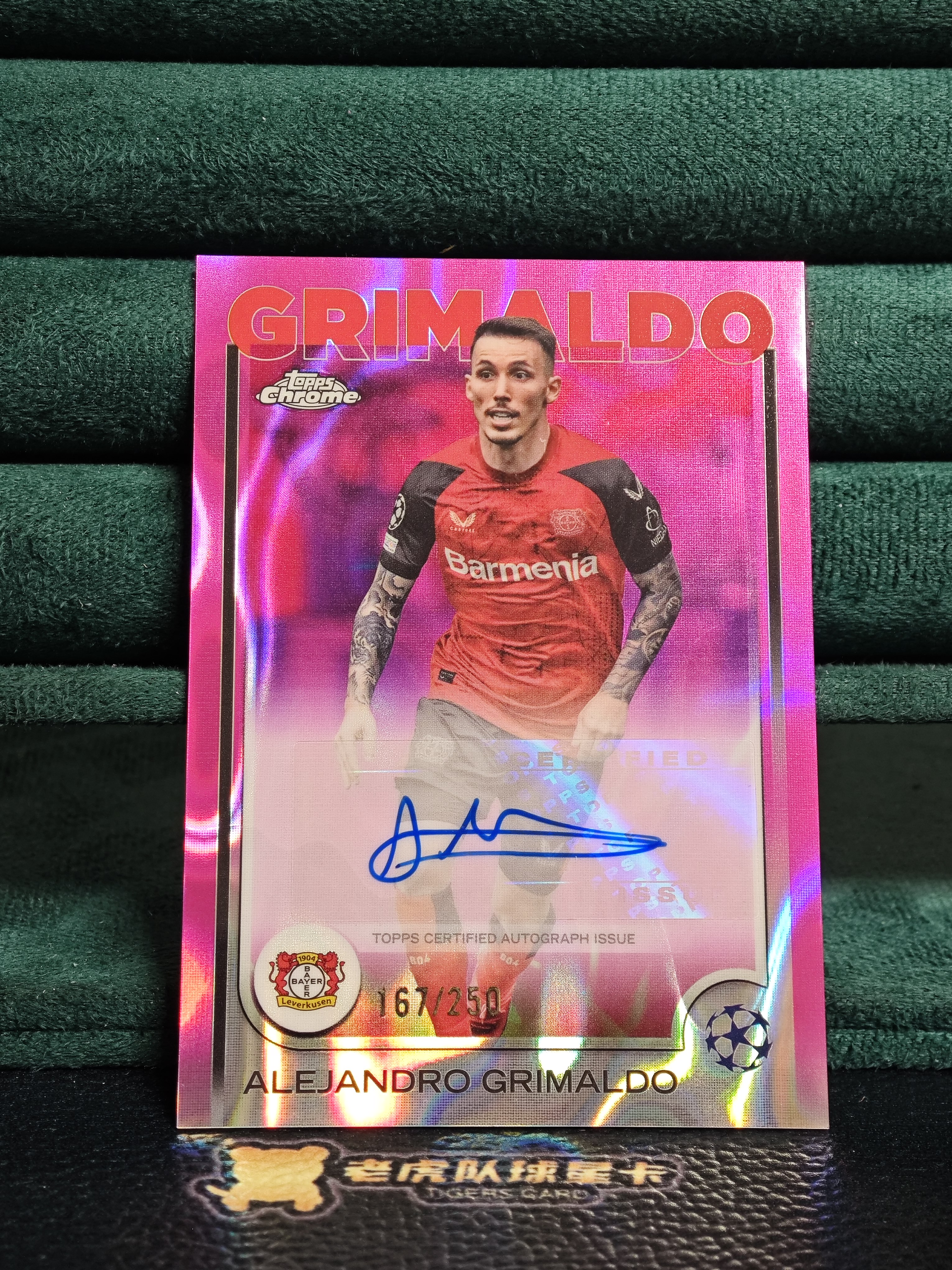 2024-25 【老虎队 海布里】topps chrome Alejandro Grimaldo 欧冠tc 格里马尔多 签字 粉熔岩折 167/250编 西班牙 勒沃库森 细痕 z