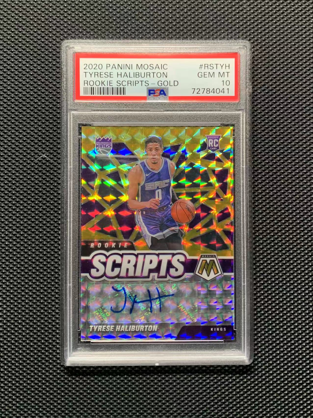2020-21 Panini Mosaic Tyrese Haliburton RC 马赛克 新秀 国王 哈利伯顿 哈里伯顿 签字 金折 折射 PSA10分 评级卡 品见大图