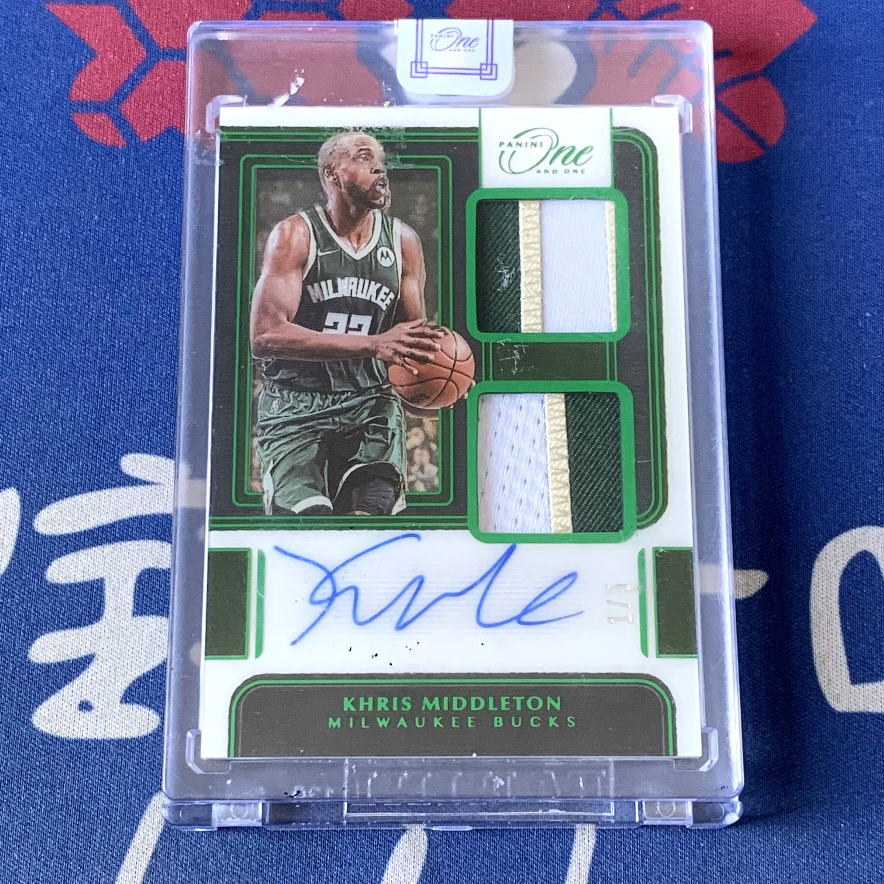 2021-22 Panini One and One Khris Middleton 【海宝】雄鹿 米德尔顿 1/5编 首编 超低编 绿宝石 双窗暴力PA签字卡 卡签 原封砖有损 收藏必备【ZRK】