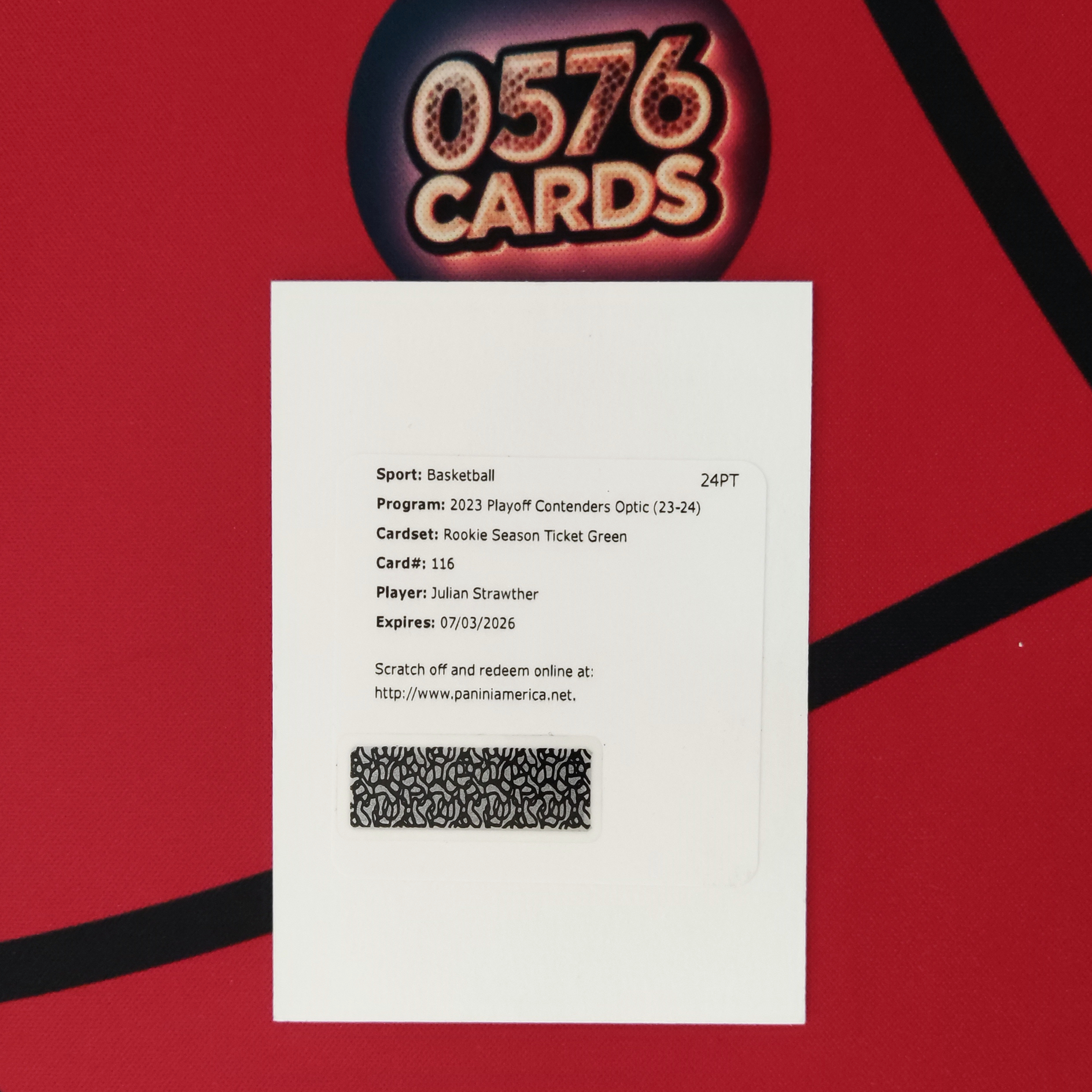 2023-24 Panini Contenders Optic Julian Strawther RC 朱利安 斯特劳瑟 掘金 75编 绿折 新秀 签字卡 卡签 交换板 板子 只发卡不发码【零五七六】