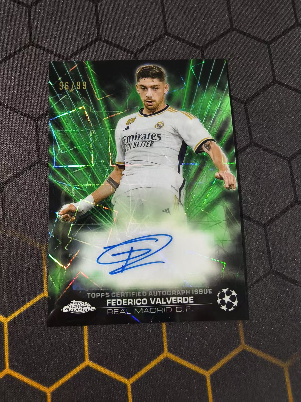 2023-24 Topps Chrome Federico Valverde 虚一卡社 巴尔韦德 96/99编 签字 绿镭射 实卡精美 皇马 乌拉圭 姆巴佩队友
