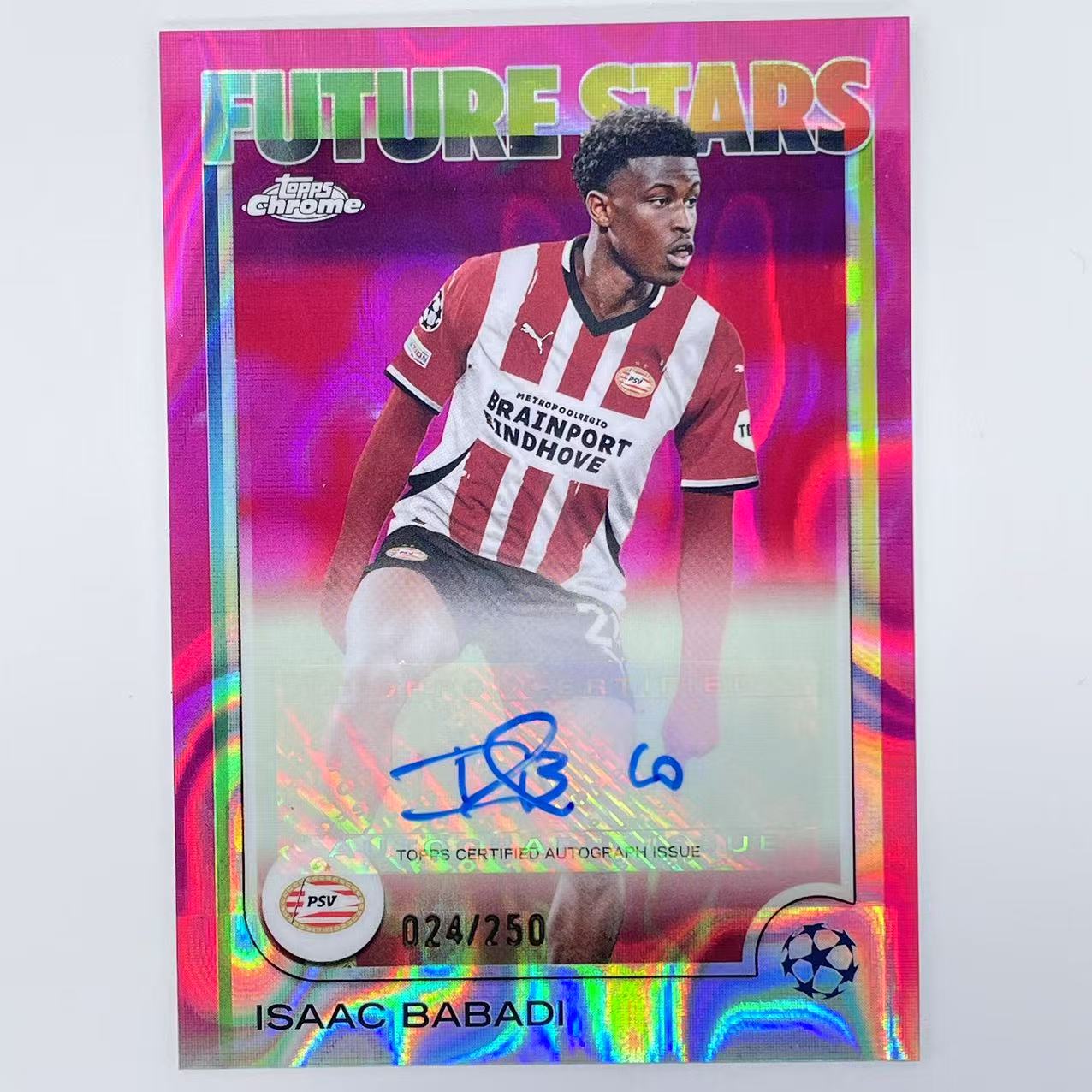 2024-25 Topps Chrome Isaac Babadi 欧冠TC 荷兰 埃因霍温 伊萨克 巴巴迪 签字 250编 粉熔岩折 未来之星签 巴卡约科蒂尔曼诺阿朗佩皮萨伊瓦里斯豪滕队友 微瑕 B