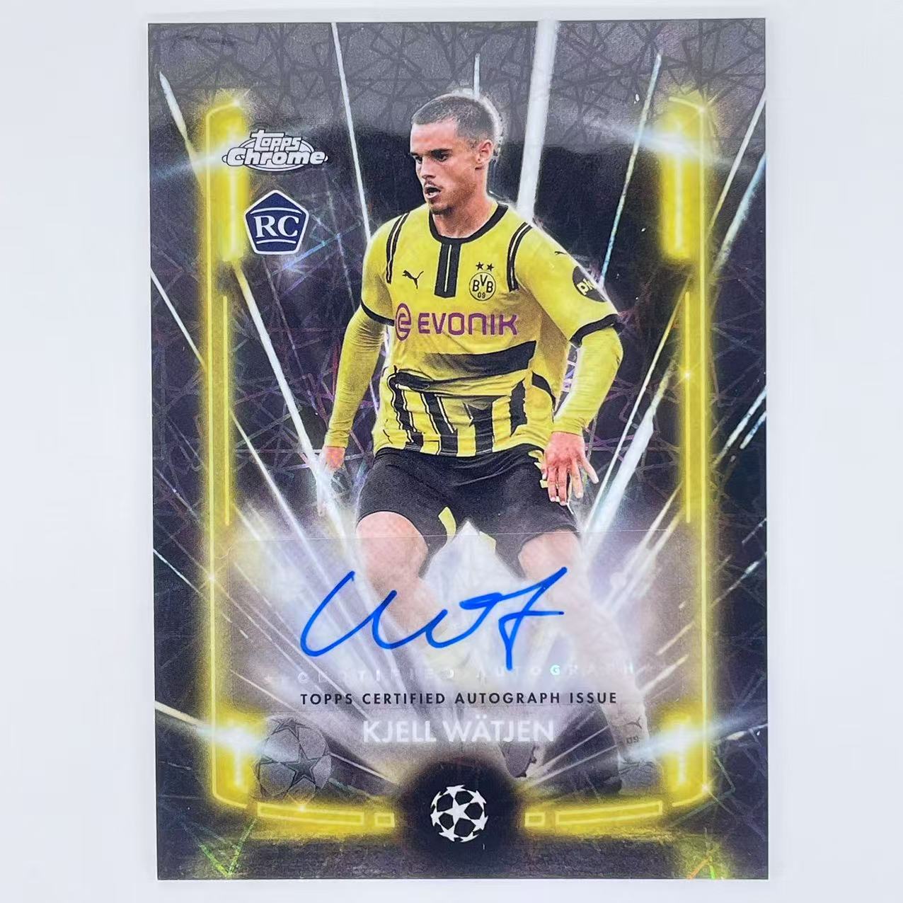 2024-25 Topps Chrome Kjell Watjen RC 欧冠TC 德国 多特 魏特延 新秀 签字 黑镭射签 巨量独占 小队长 未来可期 吉滕斯迪朗维尔拜尔阿德耶米吉拉西坎贝尔队友 B