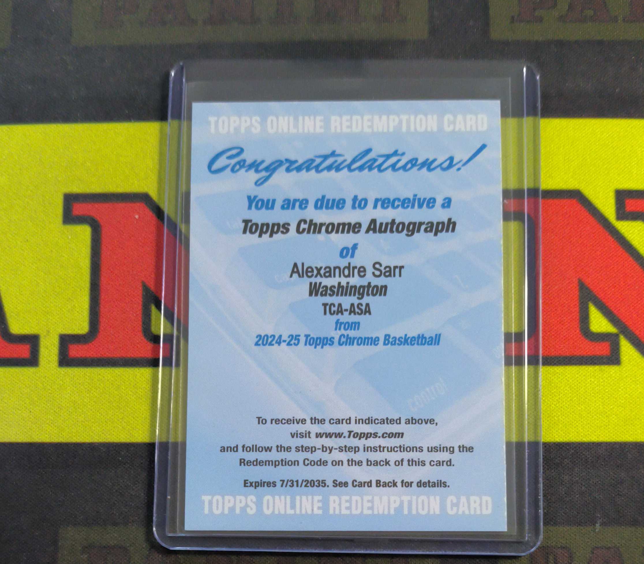 2025 Topps Chrome Alexandre Sarr RC 华盛顿奇才 榜眼 新秀 rc 亚历山大 萨尔 签字 交换板(Kevin wu)
