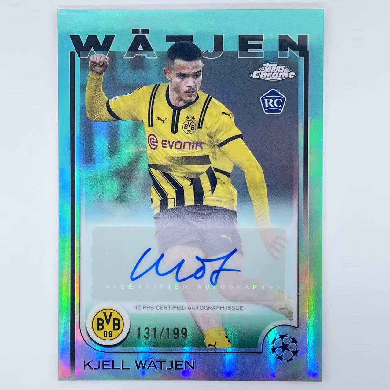 2024-25 Topps Chrome Kjell Watjen RC 欧冠TC 德国 多特 魏特延 新秀 签字 199编 青折 小队长 未来可期 吉滕斯迪朗维尔拜尔阿德耶米吉拉西坎贝尔队友 B