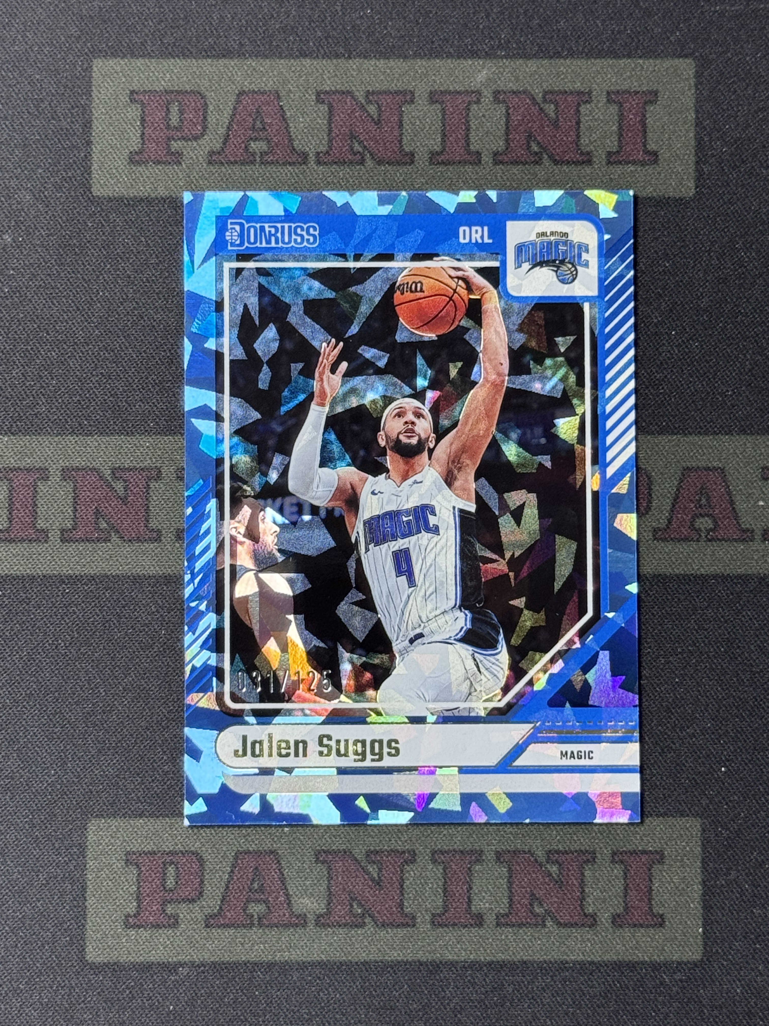 2024-25 Panini Donruss Jalen Suggs 【卡掌柜代拍】魔术 杰伦 萨格斯 外线防守大闸 蓝碎冰折 折射 031/125编 带编 瑕疵看图 收藏必备