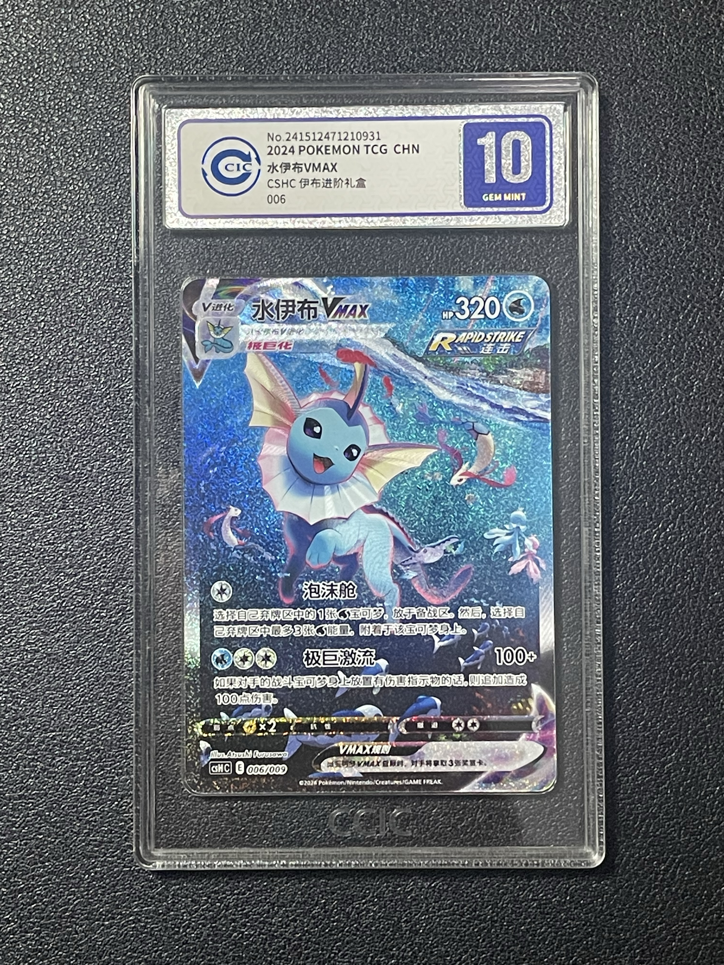 2024 Pokemon TCG 伊布进阶礼盒 水伊布 CSHC 水伊布VMAX CSHC-006 ja CCIC 10分 闪卡 高罕 打牌 收藏 凑套必备 实卡精美1