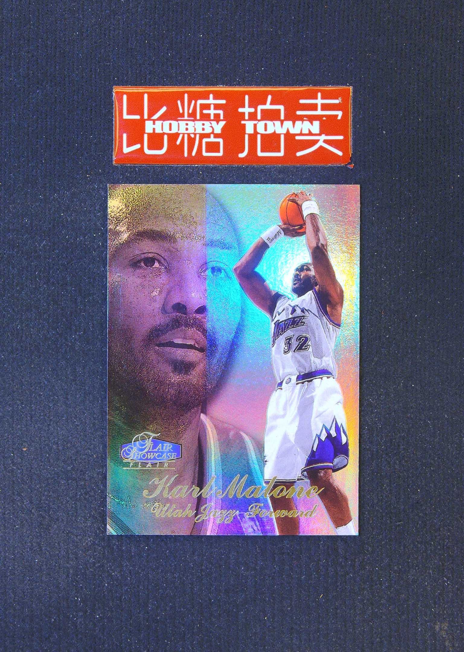 1997-98 Fleer Showcase Karl Malone 【比糖拍卖】卡尔 马龙 邮差 爆闪Holofoil折射 Row3 大头肖像 USA老卡老特投资首选印痕轻印(卡特老陈