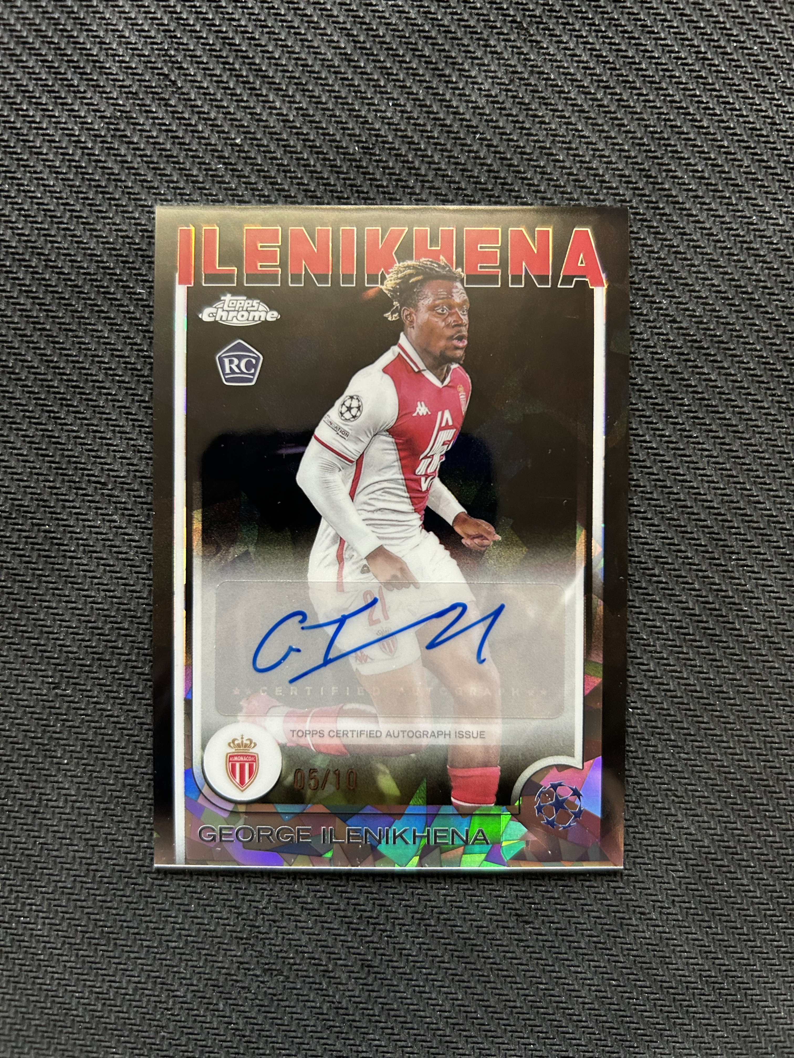 2024-25 Topps Chrome George Ilenikhena RC 欧战 蓝宝石 伊莱尼赫纳 新秀 10编 黑碎冰 签字 摩纳哥 法国 18岁小妖前锋 实卡精美 专收凑套必备 卡品如图