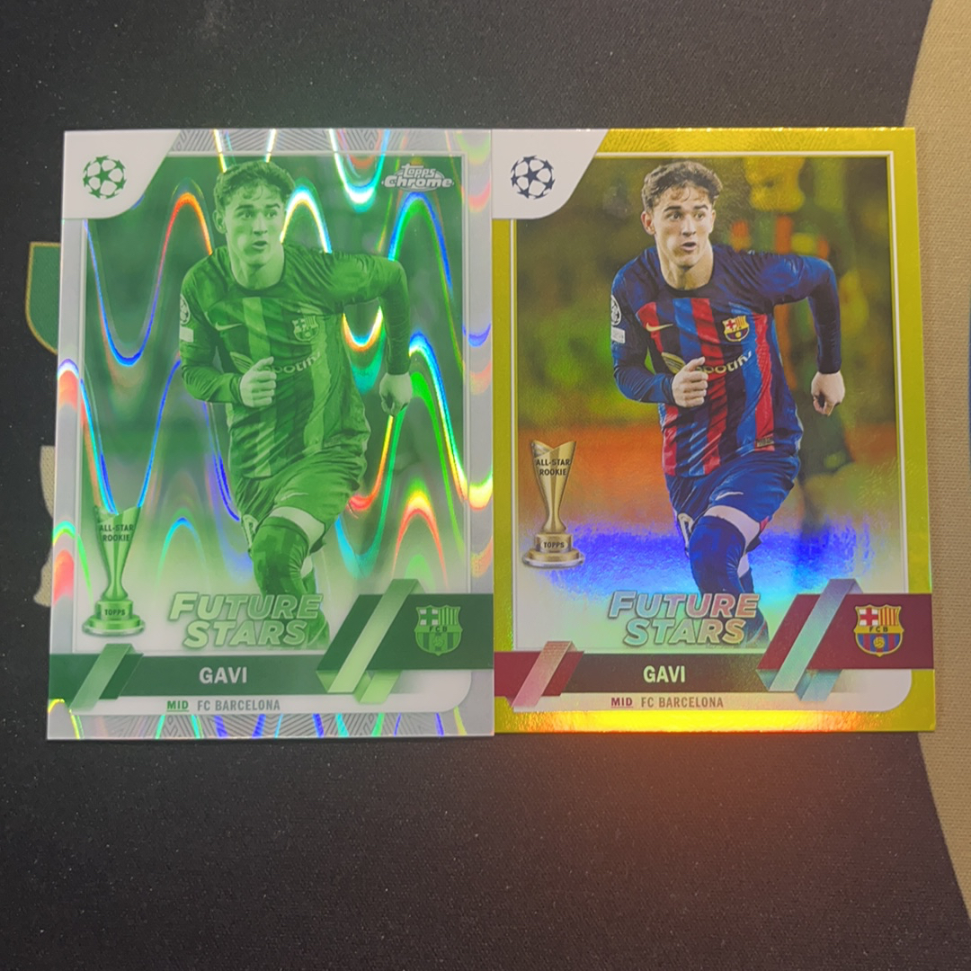 2022-23 Topps Chrome 加维 Gavi 加比 加维 太子 金童 巴萨 巴塞罗那 西班牙 次年新秀 欧冠 299编 /225编 黑白波纹折 黄折 两张 打包