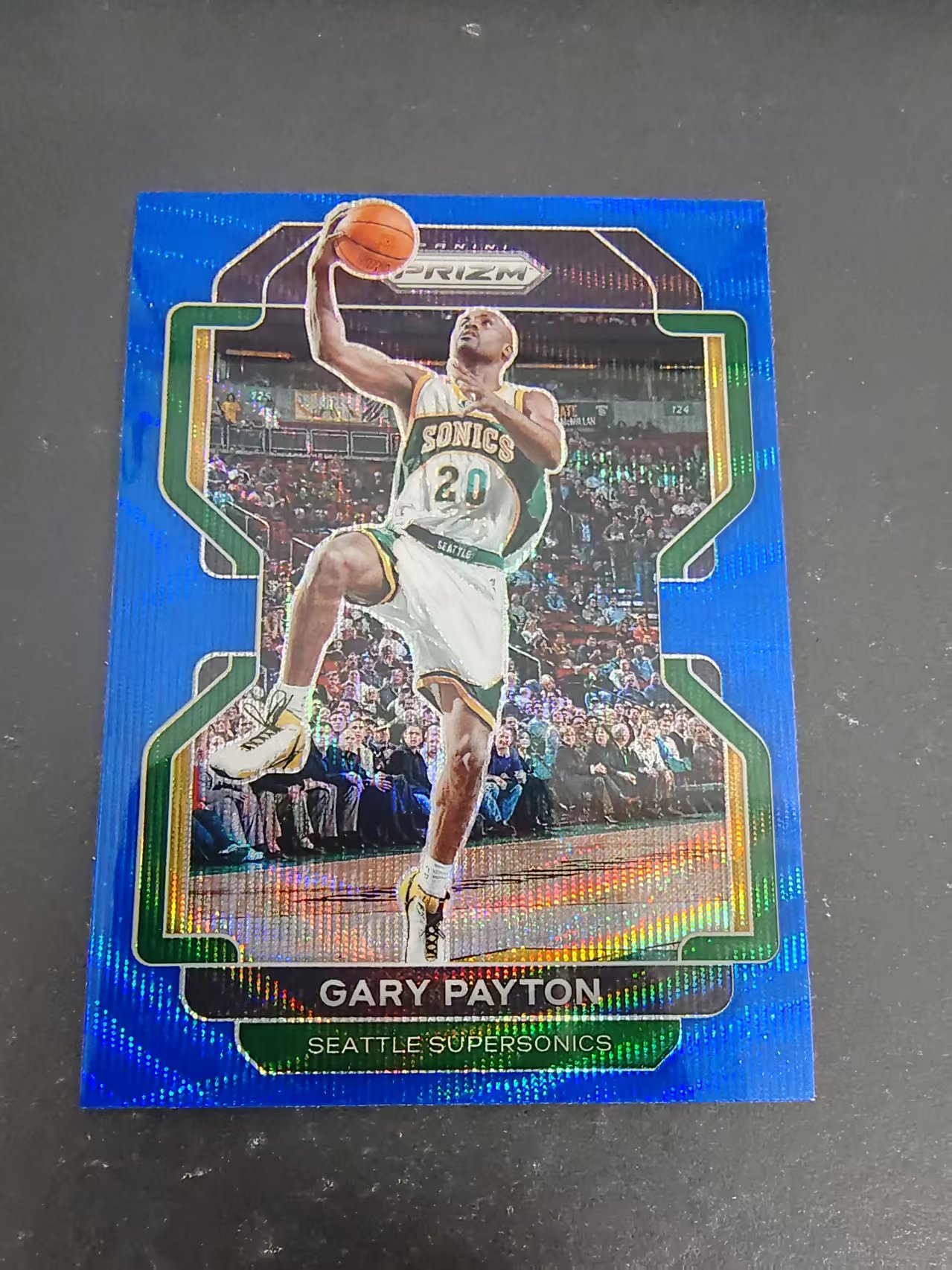 【可合并,不累计】2021-22 Panini Prizm Gary Payton 加里 佩顿 手套 超音速 PZ 蓝波纹 划痕 边角瑕疵 #257