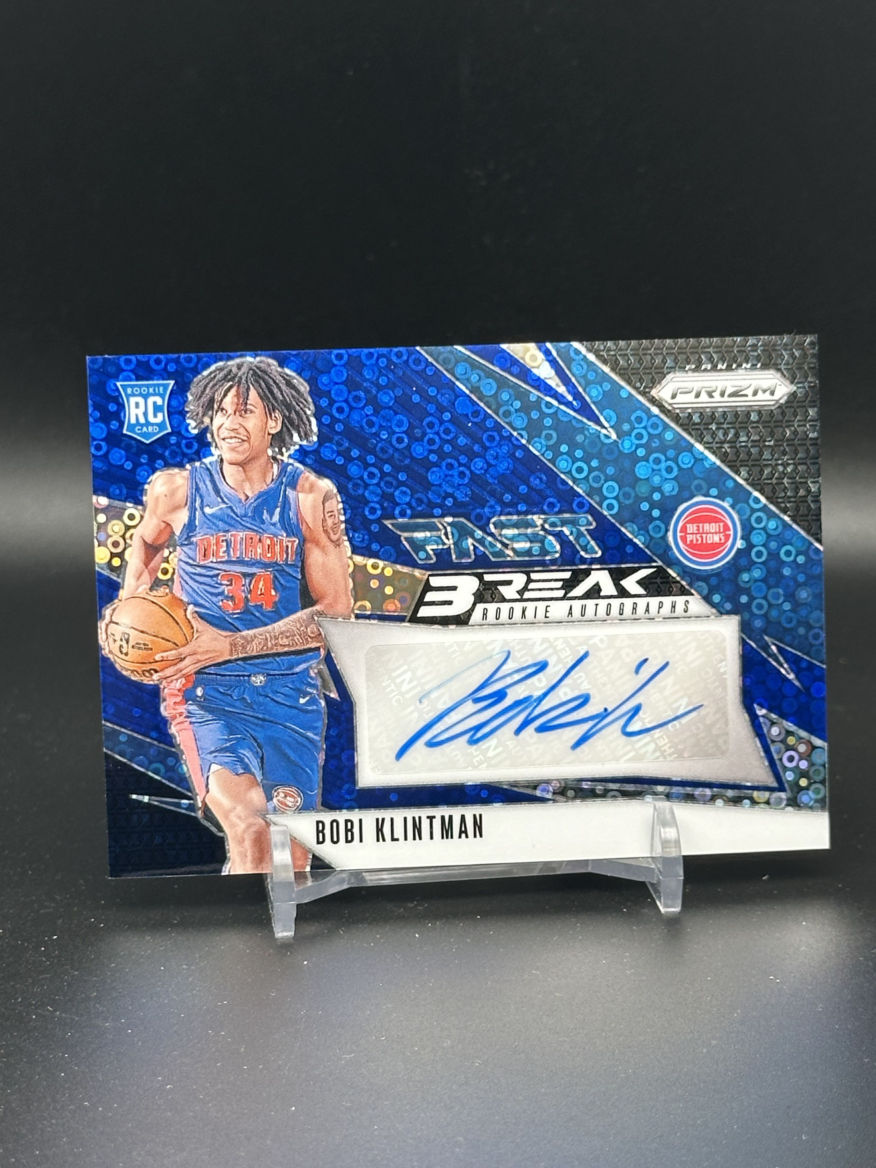 2024-25 Panini Prizm Fast Break Bobi Klintman RC 博比·克林特曼 PZ快攻系列 新秀蓝色泡泡BLUE DISCO折签字 #25/49编 活塞【大卫拍卖】