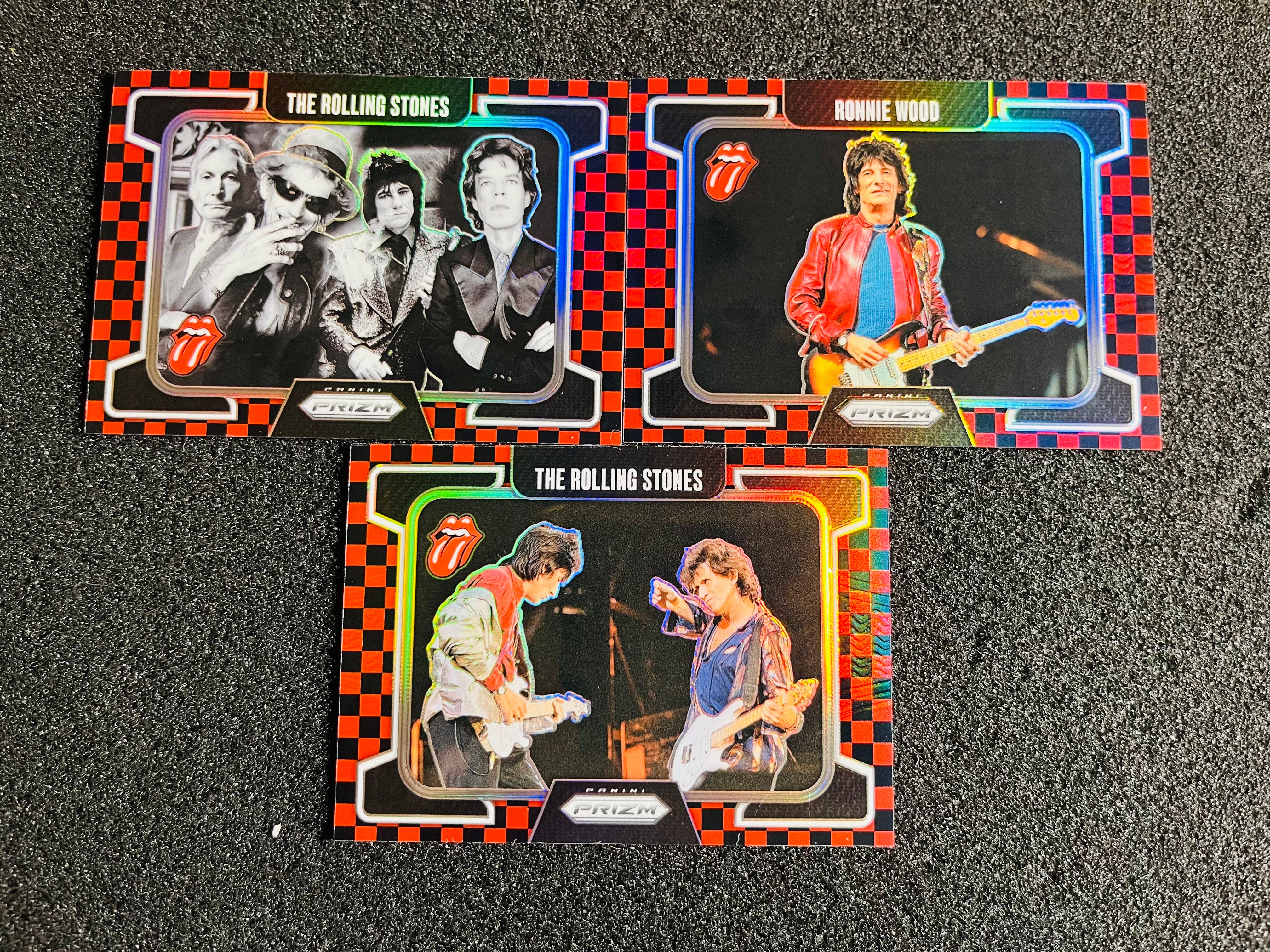 【VC拍卖0手续费到卡预付90%】2025 Panini Prizm The Rolling Stones 滚石乐队 Ronnie Wood 罗尼 伍德 组合 合照 黑红棋盘折 179编——LLCC