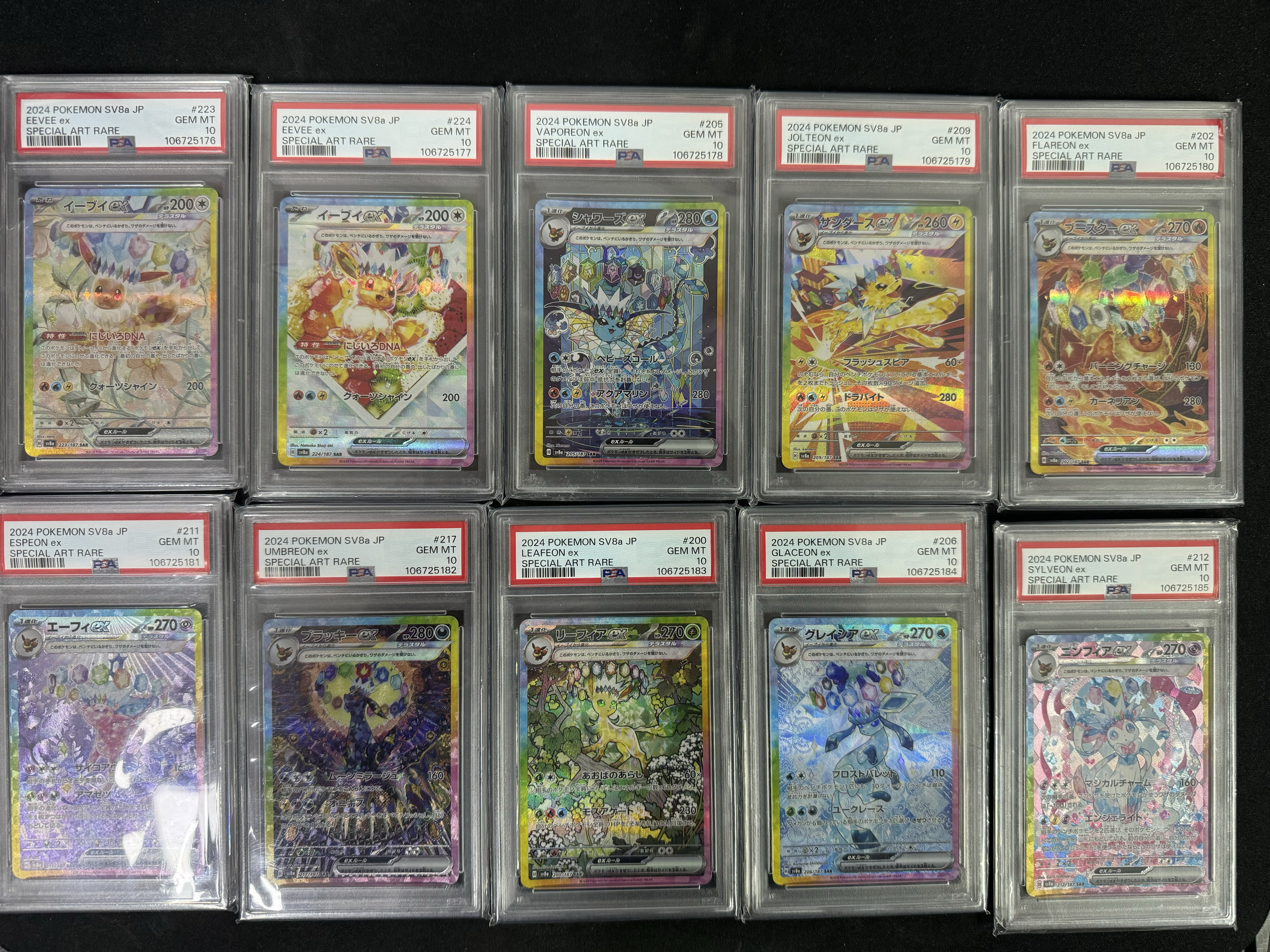 【阿茶拍卖】PTCG 宝可梦 PSA10 月亮伊布ex 仙子伊布ex 太阳伊布ex 水伊布ex 火伊布ex等 共10张 2024 SAR SV8a 太晶庆典ex 日版 全套 评级连号 76-85