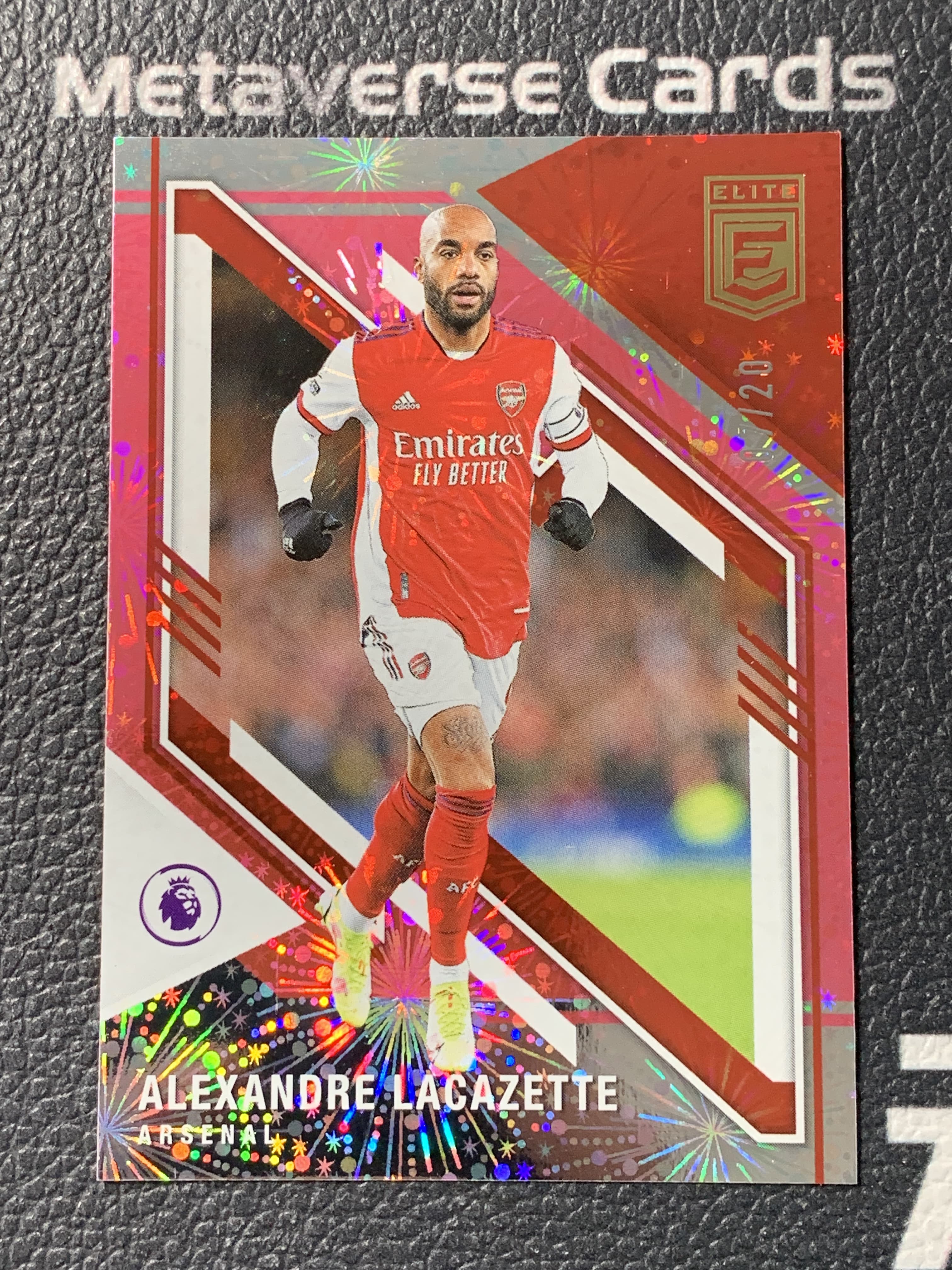 【元宇宙拍卖】顺之总038:2021-22 Panini Donruss Elite Alexandre Lacazette 杜蕾斯 精英 阿森纳 亚历山大 拉卡泽特 法国 粉烟花折 折射 07/20编 低编 微瑕如图 专收收藏必备