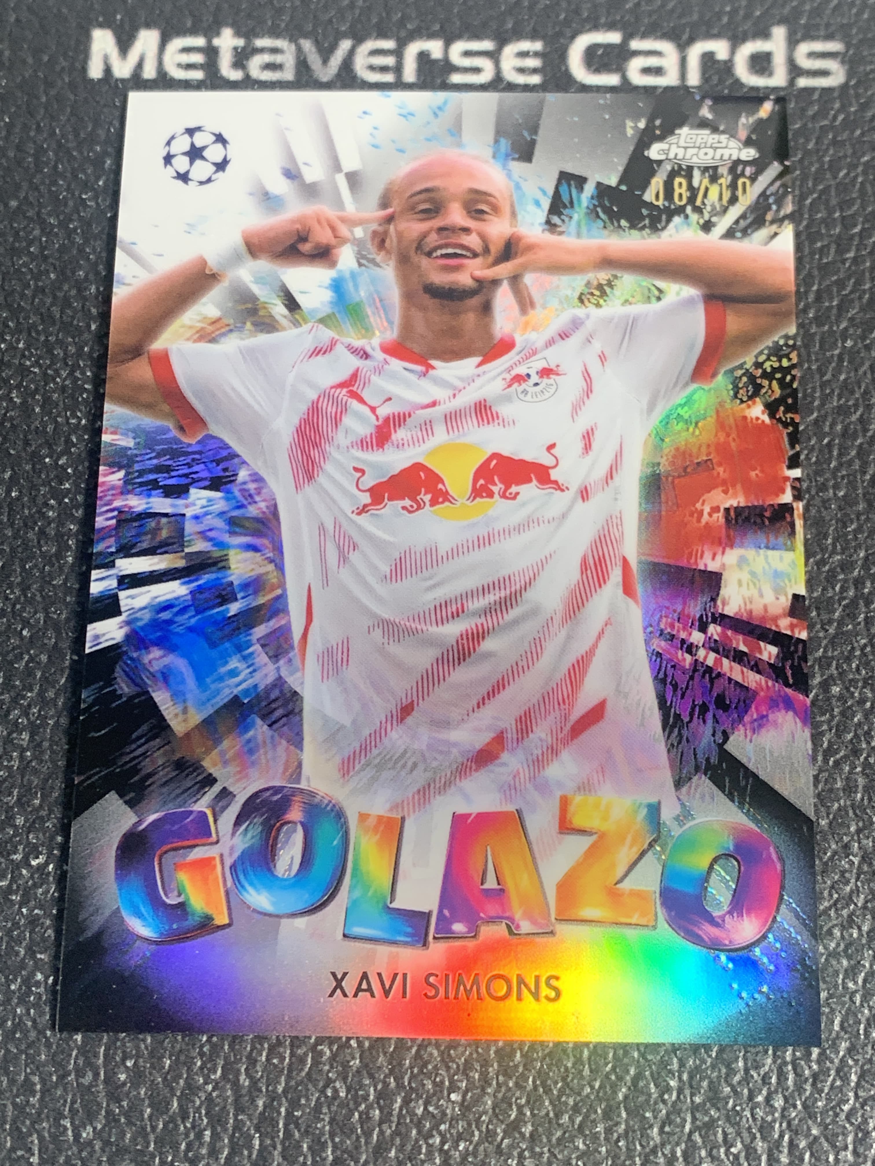 【元宇宙拍卖】希同总012:2025 Topps Chrome Xavi Simons 欧冠 莱比锡红牛 哈维 西蒙斯 荷兰 Golazo 特卡 黑折 折射 08/10编 低编 微瑕如图 专收收藏必备