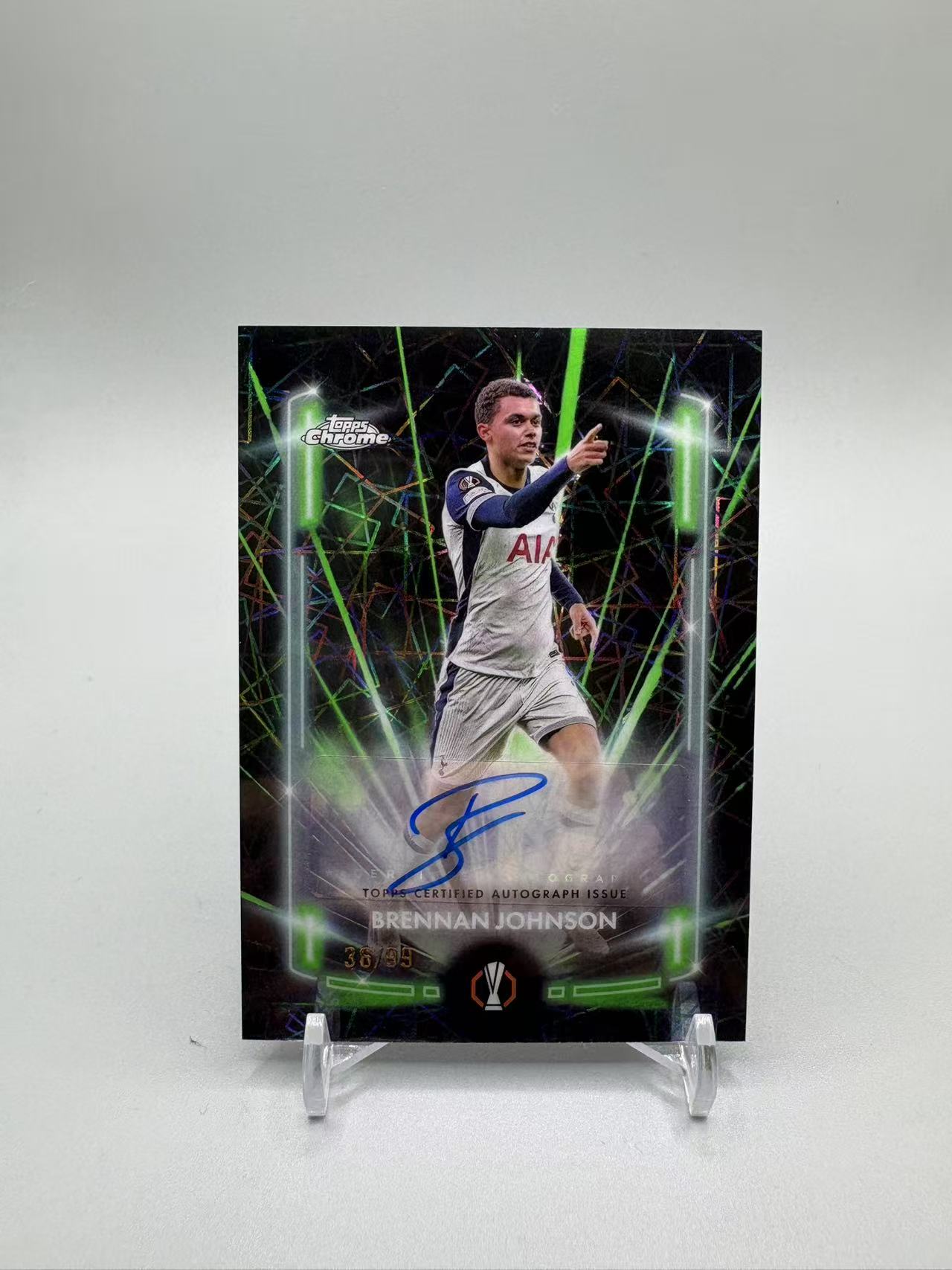 2024-25 Topps Chrome brennan johnson 【灰灰代拍】全新 欧冠 chrome 热刺 布伦南 约翰逊 绿镭射折 99编 签字 hzj