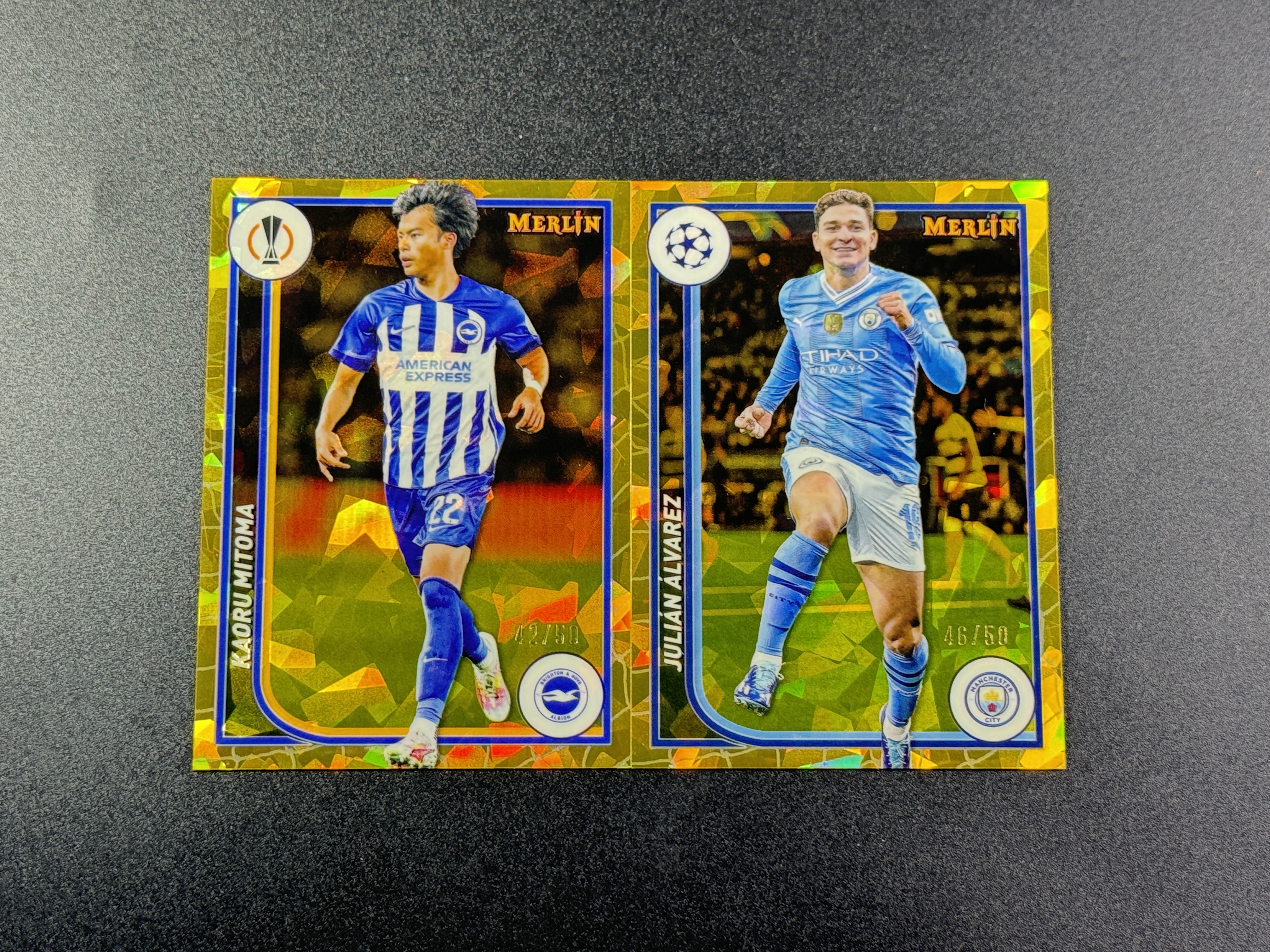 【喷子拍卖】2023-24 Topps Merlin Lots 欧冠 梅林 布莱顿 三笘薰 三球王 曼城 小蜘蛛 阿尔瓦雷斯 金碎冰折 50编 专收必备 一图一起拍 SZYAN