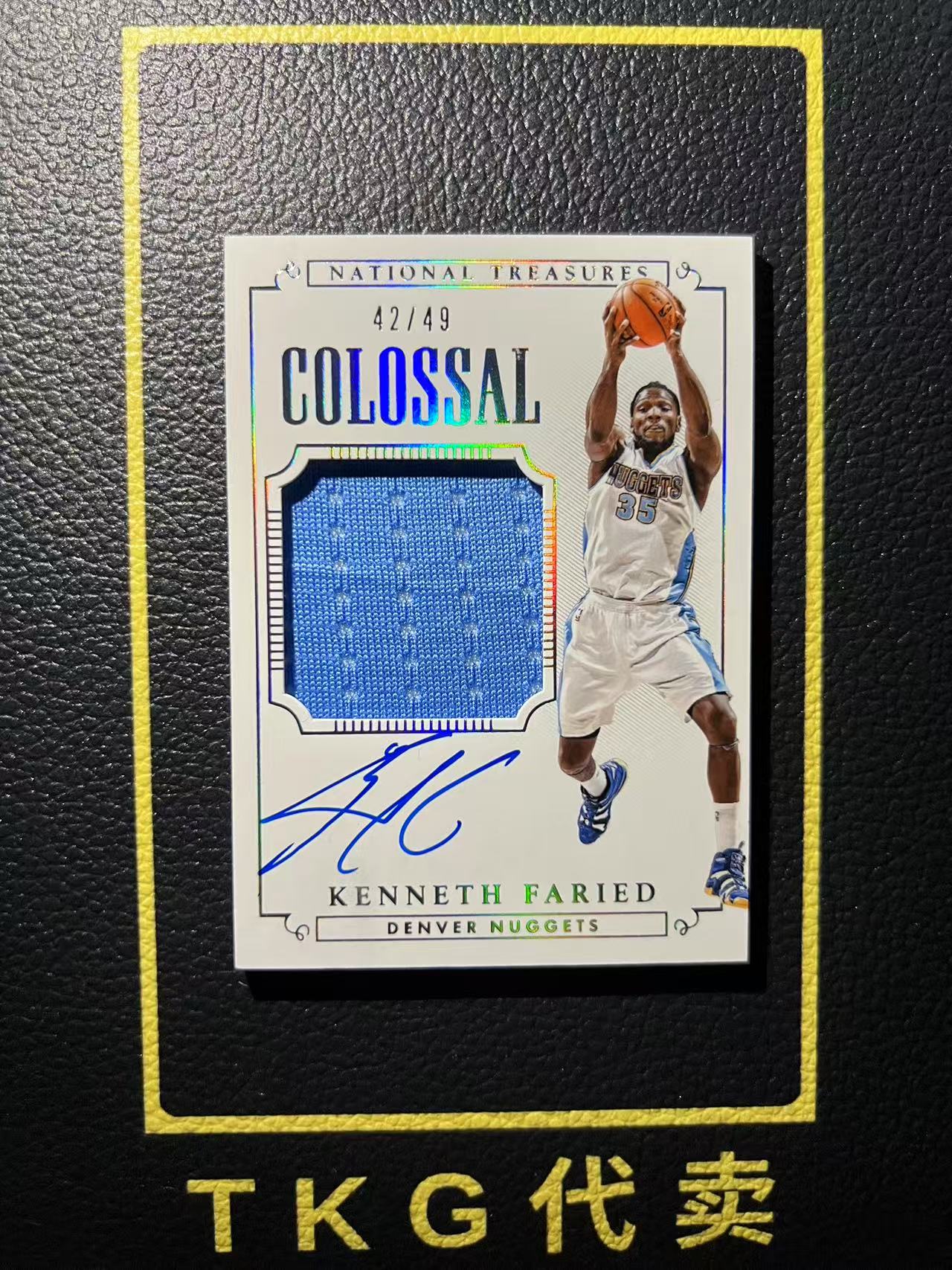 2014-15 Panini National Treasures Kenneth Faried 【TKG代卖】有德 法里德 掘金 半兽人 国宝 colossal 大窗物料 卡签 签字 49编 瑕如图