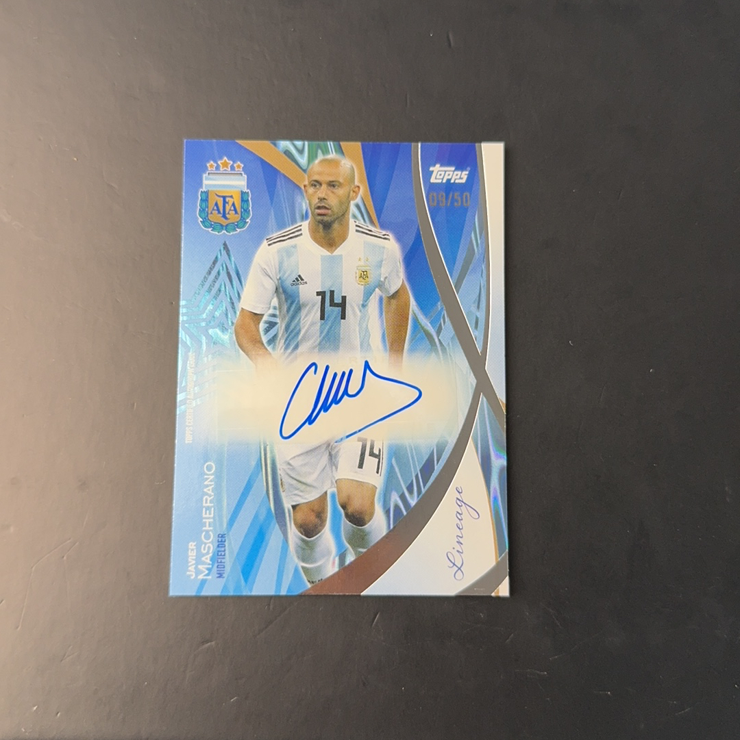 2024 Topps 阿根廷队盒 Javier Mascherano 马斯切拉诺 签字 09/50编 阿根廷 巴萨 巴塞罗那 利物浦 河北华夏幸福 传奇 名宿 阿根廷血统队盒 卡品如图 总进球