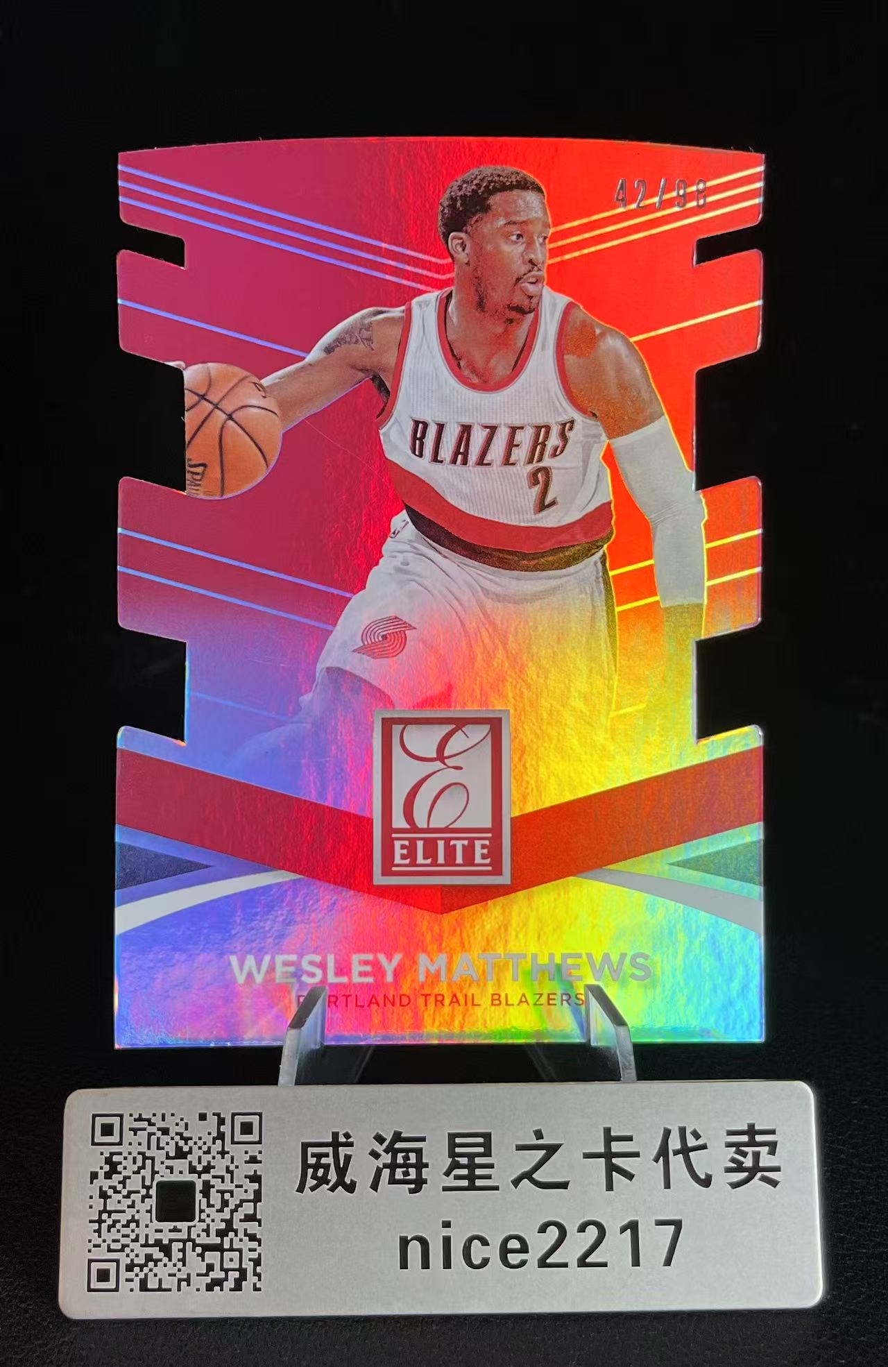 2014-15 Panini Donruss Wesley Matthews 【威海星之卡】开拓者 韦斯利马修斯 杜蕾斯 42/98编 异形切割 红折射 瑕疵看图有他A75