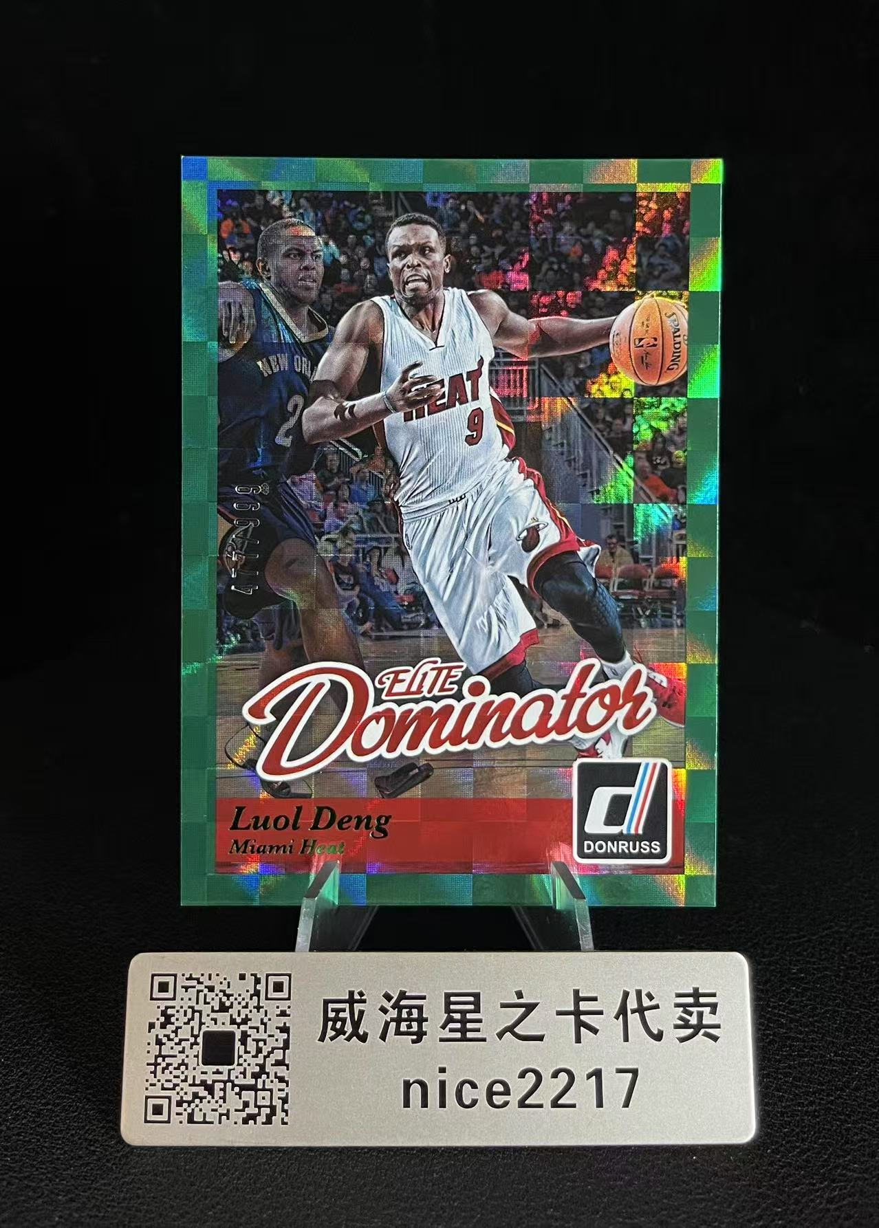 2014-15 Panini Donruss Luol Deng 【威海星之卡】热火 罗尔邓鲁尔邓 杜蕾斯 477/999编 绿格子折 绿马赛克折 绿棋盘折 绿折射 特卡 瑕疵看图有他A88