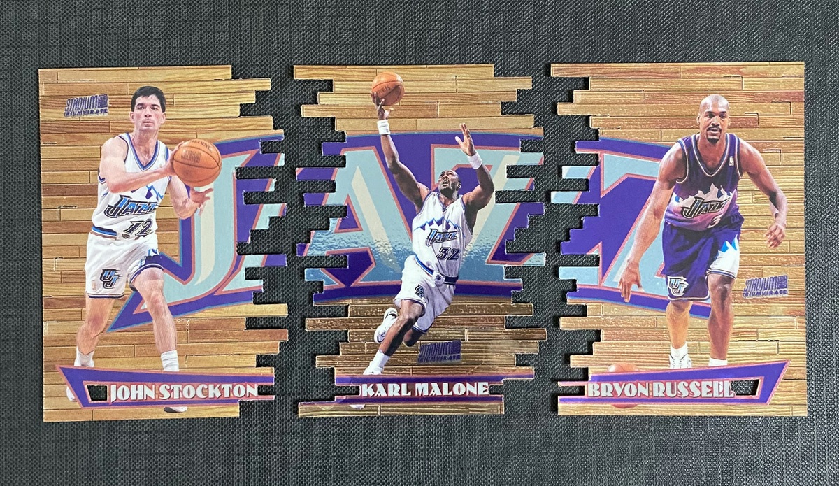 1997-98 Topps Stadium Club John Stockton 马龙 斯托克顿 拉塞尔 犹他爵士三巨头 乔丹最强劲敌 邮差 大队徽拼图 特卡 大比例超美设计 90年代经典老特美如画