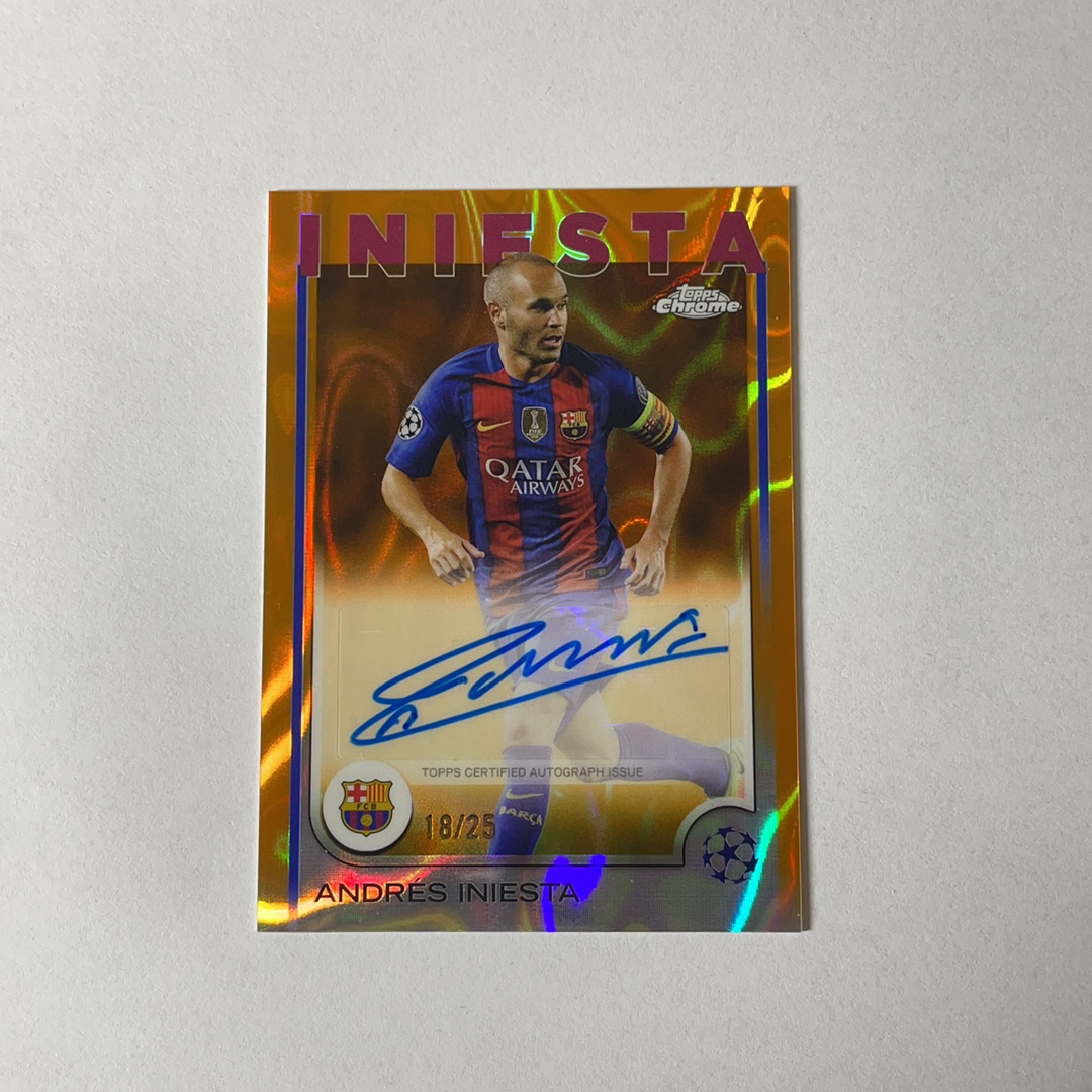 2024-25 Topps Chrome Andres Iniesta 欧冠TC 巴萨传奇 伊涅斯塔 完美签字 小白 限量18/25编 低编 正橙折 西班牙 橙熔岩 投资收藏必备 卡品如图 阴