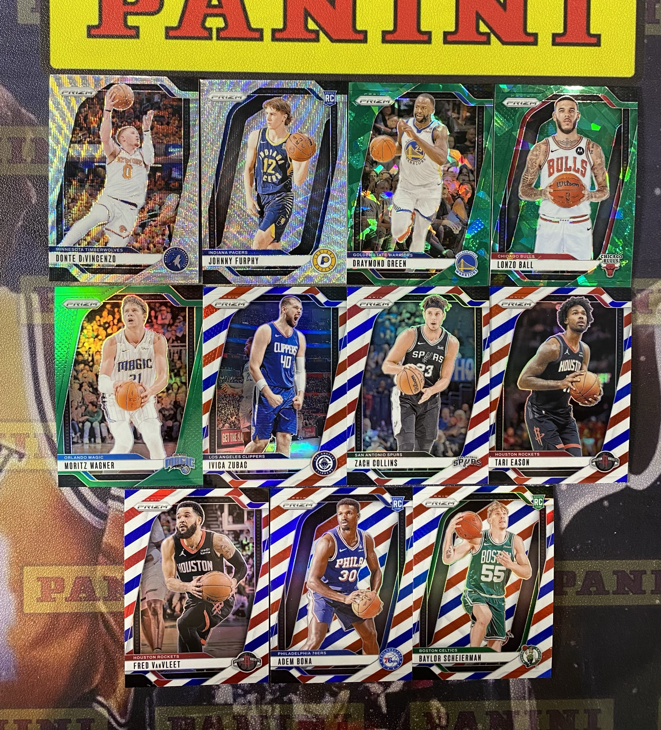 【PJ拍卖】2024-25 Panini Prizm 11张 绿折 红蓝白折 银波纹折 绿碎冰折 base 瓦格纳 范弗里特 祖巴茨 伊森 朗佐鲍尔 德拉蒙德格林 迪文琴佐 科林斯 博纳 弗菲