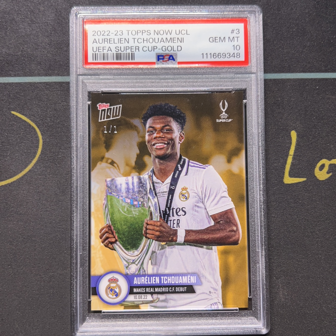 2022-23 Topps Now Aurélien Tchouameni 楚阿梅尼 皇马 雷恩 西甲 法甲 法国中场 欧冠冠军 欧洲超级杯冠军 夺冠 捧杯 金折 爆金 1/1 1编 psa10 满分