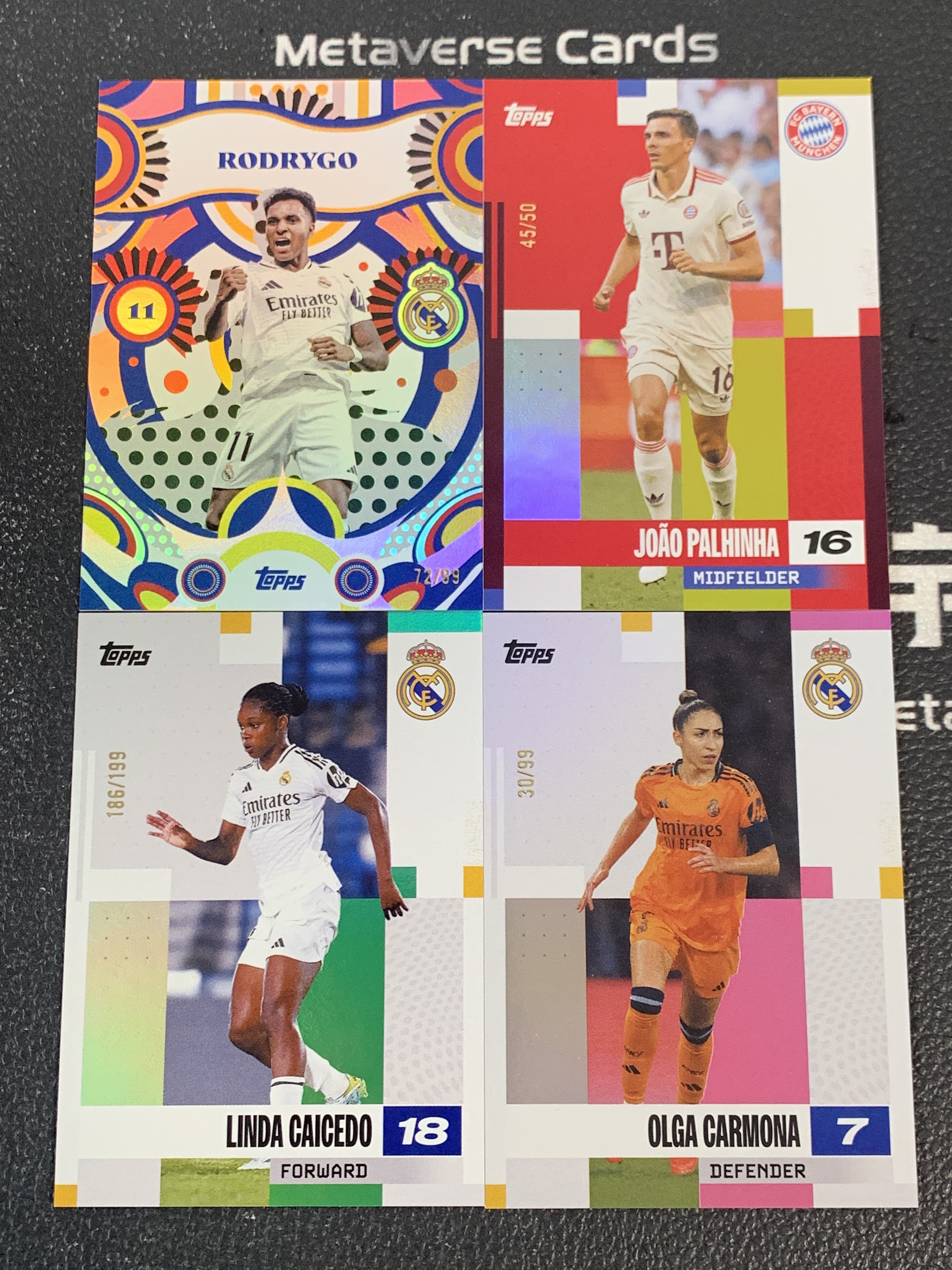 【元宇宙拍卖】顺之总066:2025 Topps 队盒 皇家马德里 罗德里戈 琳达 凯塞多 奥尔加 卡蒙娜 拜仁 帕利尼亚 超美折射 金折 粉折 绿折 50编 99编 199编 4张lot打包